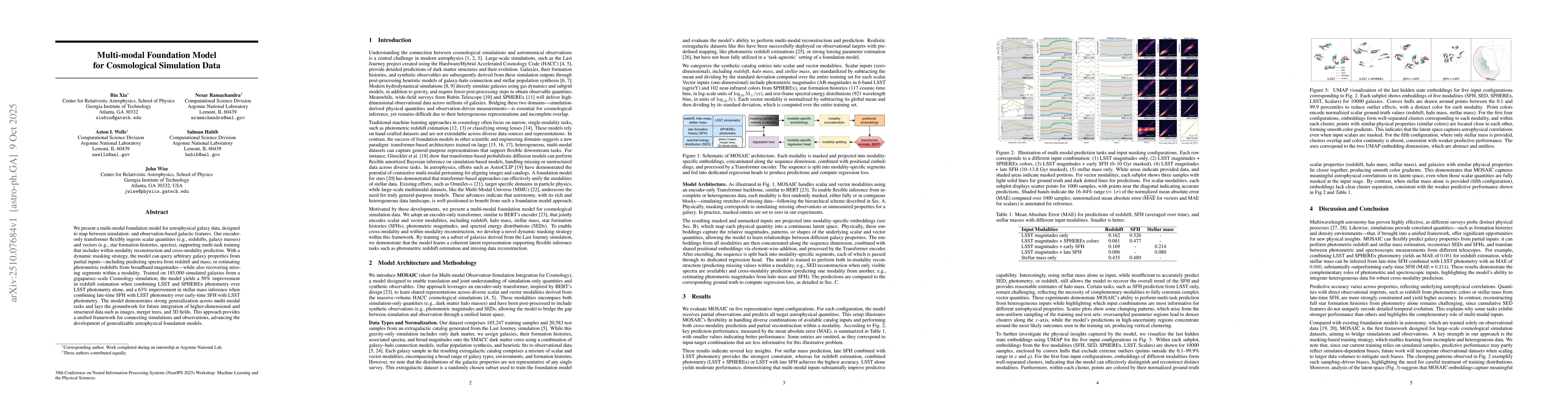 This work is the first to apply a foundation model framework to large-scale cosmological simulation datasets, providing a unified approach for connecting simulations with observations through multi-modal data processing.