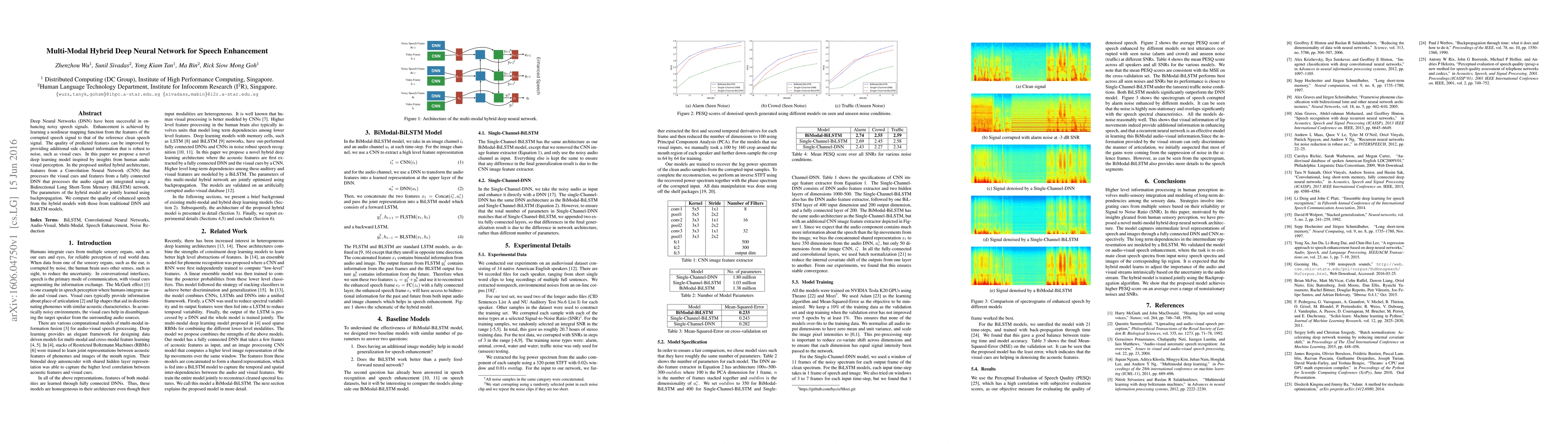 A new deep learning model combines visual cues with audio signals to enhance noisy speech using a hybrid architecture that improves quality over traditional models. The model achieves better results than standalone convolutional neural networks and bidirectional long short-term memory networks.