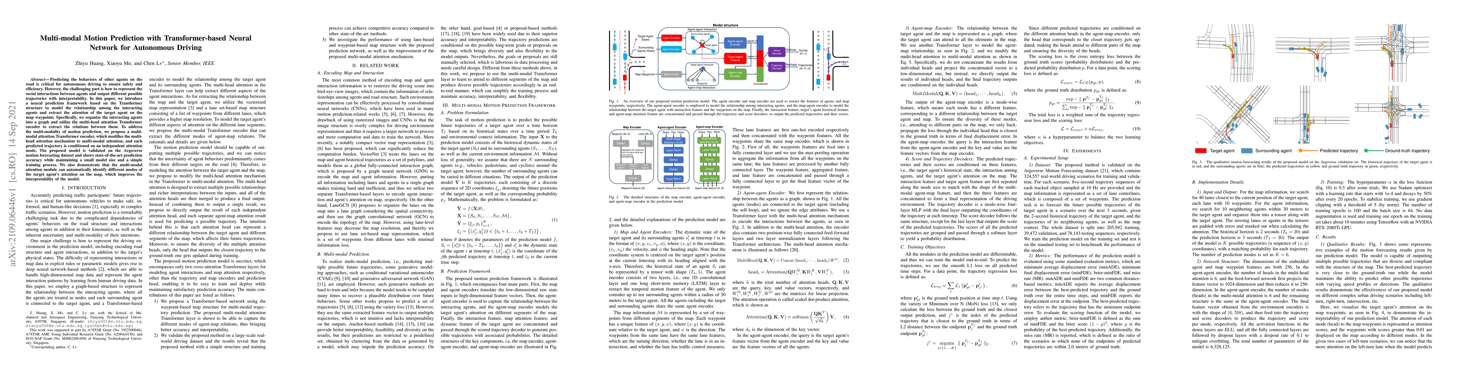 This paper proposes a Transformer-based neural network for multi-modal motion prediction in autonomous driving, utilizing a multi-modal attention mechanism to model interactions among road agents and predict various possible trajectories. The model demonstrates state-of-the-art accuracy and interpretability on the Argoverse dataset.