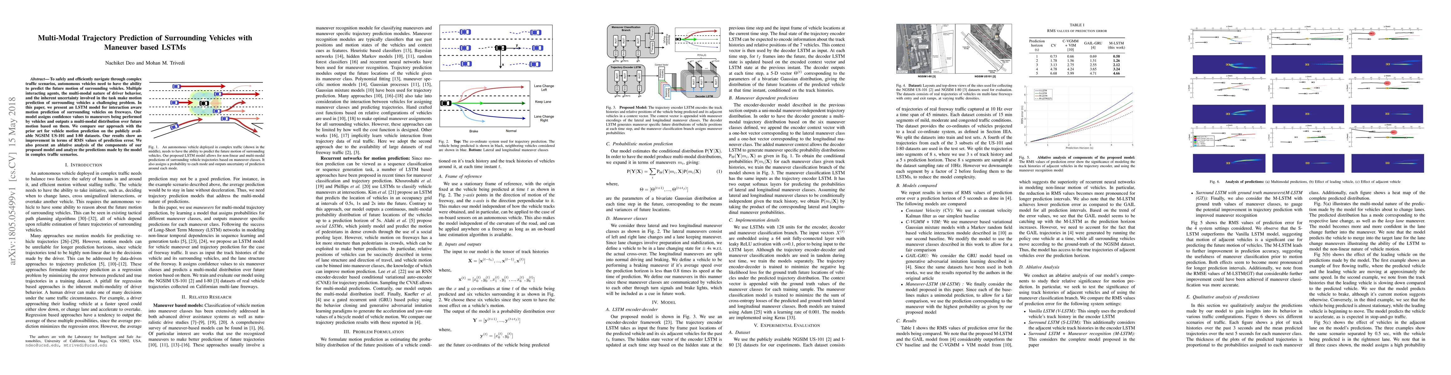 This paper proposes an LSTM-based model for predicting the multi-modal trajectories of surrounding vehicles on freeways, assigning confidence to vehicle maneuvers and improving prediction accuracy over existing methods, as demonstrated on NGSIM datasets. The model's performance is validated through an ablative analysis and evaluation in complex traffic scenarios.