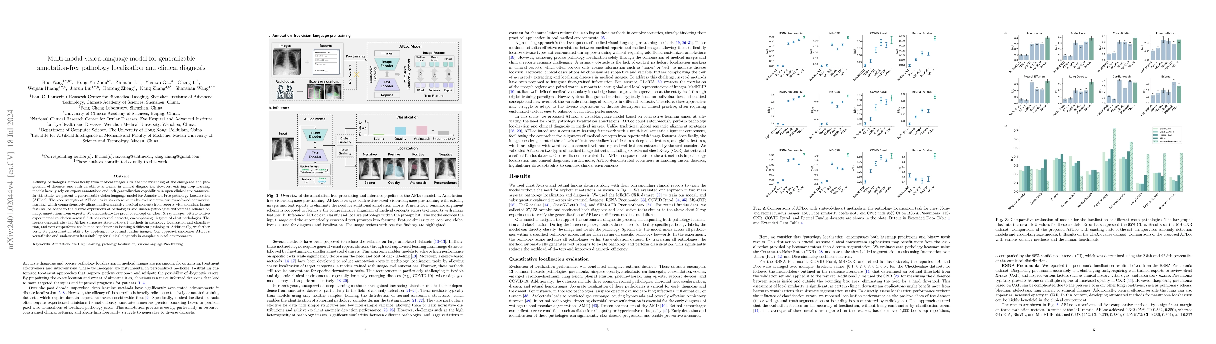 This paper introduces a multi-modal vision-language model for automatic localization and diagnosis of pathological lesions in medical images without requiring expert annotations. The proposed model, AFLoc, uses multi-level semantic structure-based contrastive learning to align medical concepts with image features, demonstrating superior performance in localizing chest pathologies and generalizing to retinal fundus images.