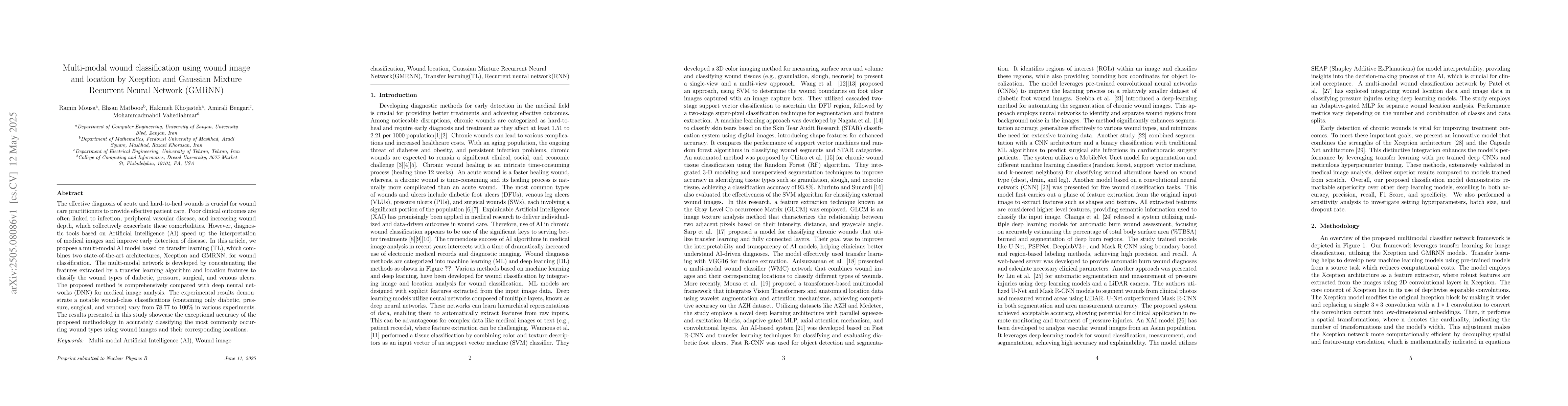 The significant technical contribution lies in the development of a multi-modal deep learning architecture that combines Xception and GMRNN for wound classification, leveraging both image and location data.