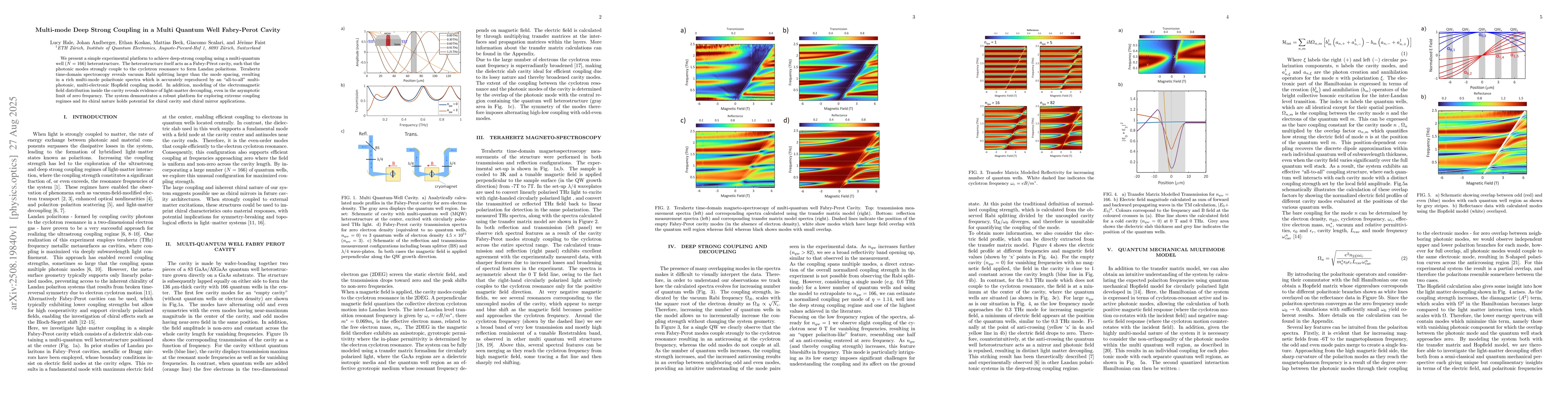 We present a simple experimental platform to achieve deep-strong coupling using a multi-quantum well ($N = 166$) heterostructure. The heterostructure itself acts as a Fabry-P\'erot cavity, such that the photonic modes strongly couple to the cyclotron resonance to form Landau polaritons. Terahertz time-domain spectroscopy reveals vacuum Rabi splitting larger than the mode spacing, resulting in a rich multi-mode polaritonic spectra which is accurately reproduced by an "all-to-all" multi-photonic, multi-electronic Hopfield coupling model. In addition, modeling of the electromagnetic field distribution inside the cavity reveals evidence of light-matter decoupling, even in the asymptotic limit of zero frequency. The system demonstrates a robust platform for exploring extreme coupling regimes and its chiral nature holds potential for chiral cavity and chiral mirror applications.