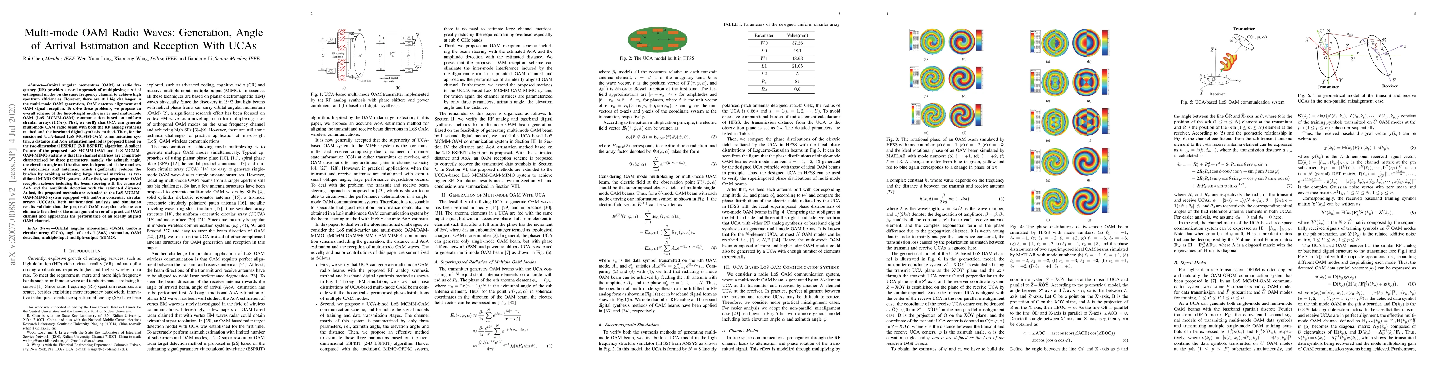 This paper proposes a scheme for multi-mode orbital angular momentum (OAM) radio communication using uniform circular arrays (UCAs) to address challenges in OAM generation, alignment, and signal reception. It introduces a LoS MCMM-OAM communication system that simplifies channel matrix estimation and presents an OAM reception scheme that mitigates misalignment errors.