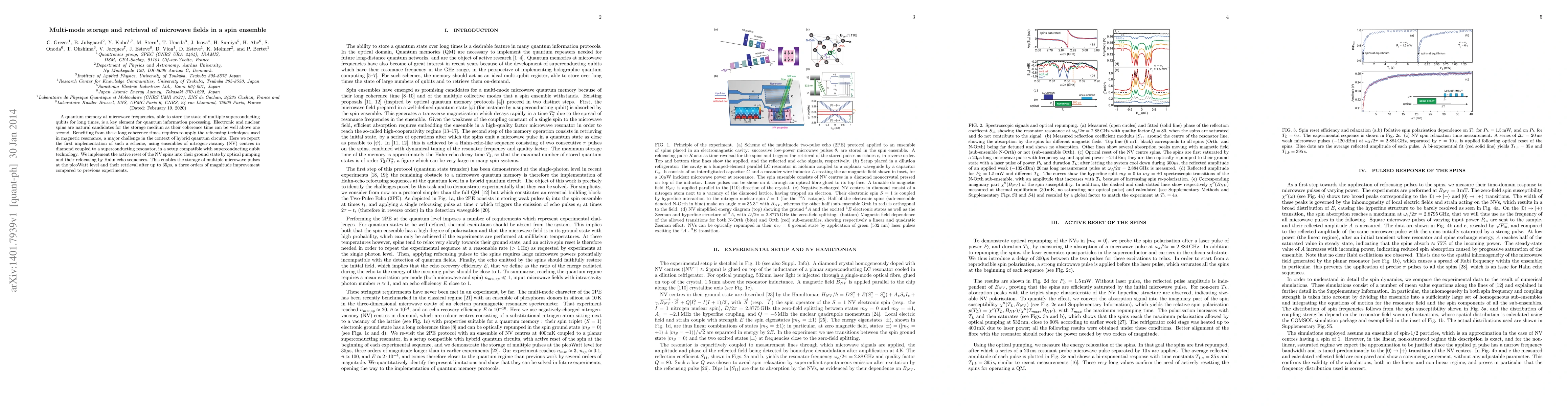 This research demonstrates the first successful implementation of microwave field storage and retrieval using nitrogen-vacancy (NV) centers in diamond coupled with superconducting resonators. The method, utilizing optical pumping for active reset and Hahn echo sequences for spin refocusing, enables the storage of multiple microwave pulses at low power levels (picoWatt) for durations up to 35 microseconds, marking a significant improvement over prior experiments.