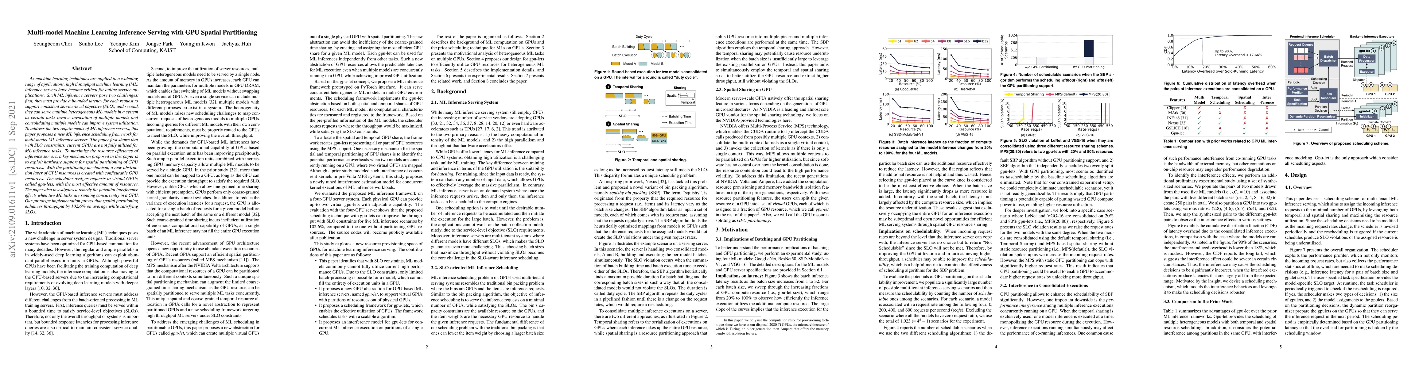 This paper proposes a new ML inference scheduling framework that utilizes GPU spatial partitioning to enhance throughput and resource efficiency for multi-model inference servers. The framework creates virtual GPUs, called gpu-lets, to optimize resource allocation and mitigate interference effects, achieving a 102.6% average throughput improvement while meeting service-level objectives.