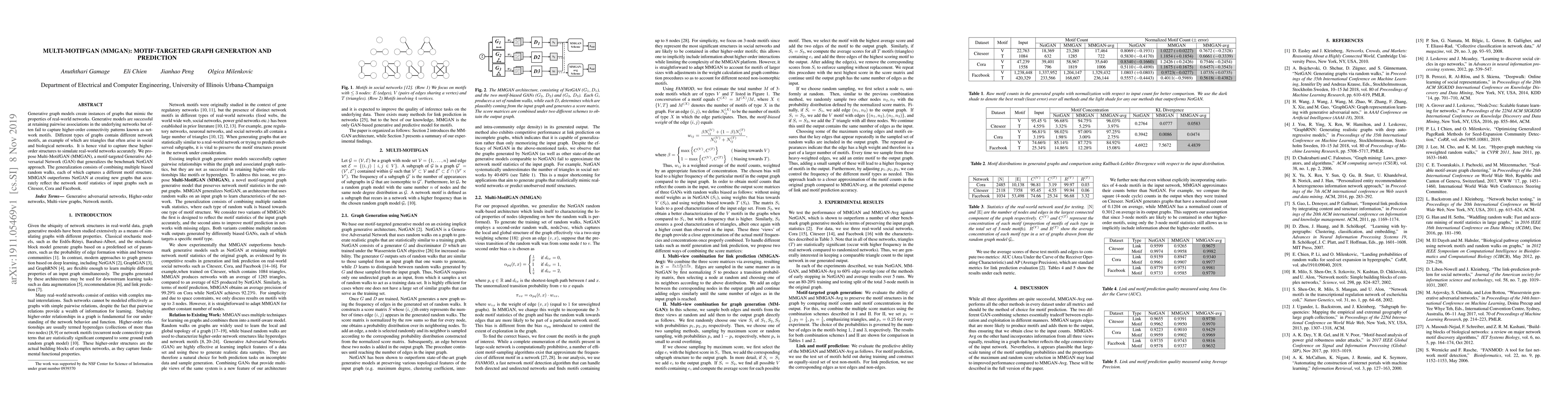 Generative graph models create instances of graphs that mimic the properties of real-world networks. Generative models are successful at retaining pairwise associations in the underlying networks but often fail to capture higher-order connectivity patterns known as network motifs. Different types of graphs contain different network motifs, an example of which are triangles that often arise in social and biological networks. It is hence vital to capture these higher-order structures to simulate real-world networks accurately. We propose Multi-MotifGAN (MMGAN), a motif-targeted Generative Adversarial Network (GAN) that generalizes the benchmark NetGAN approach. The generalization consists of combining multiple biased random walks, each of which captures a different motif structure. MMGAN outperforms NetGAN at creating new graphs that accurately reflect the network motif statistics of input graphs such as Citeseer, Cora and Facebook.