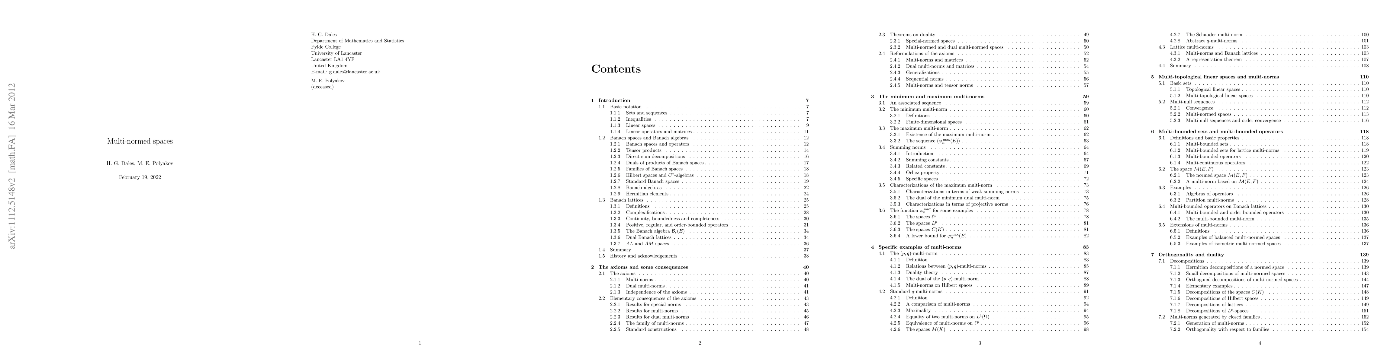 This paper extends normed spaces by introducing multi-normed spaces, where each norm acts on the product space of the original space raised to various degrees. It explores connections to $L^1$-spaces and the theory of absolutely summing operators, presenting various characterizations and examples of multi-norms, and concluding with a discussion on orthogonal decompositions and multi-dual spaces.