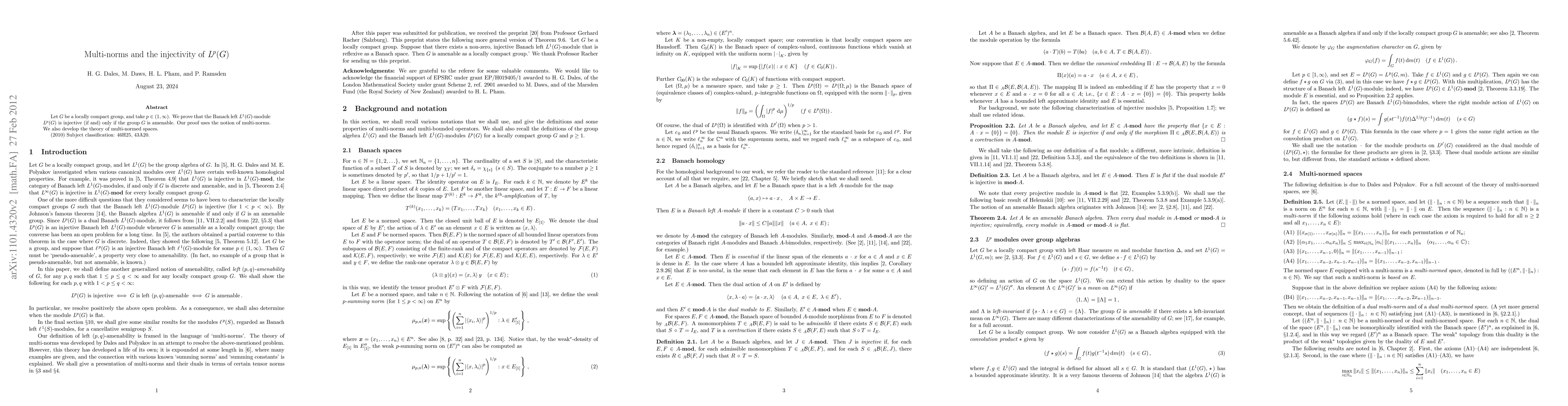 This research paper proves that the Banach left L¹(G) module L^p(G) is injective if and only if the locally compact group G is amenable, utilizing the concept of multi-norms. The study also advances the theory of multi-normed spaces.