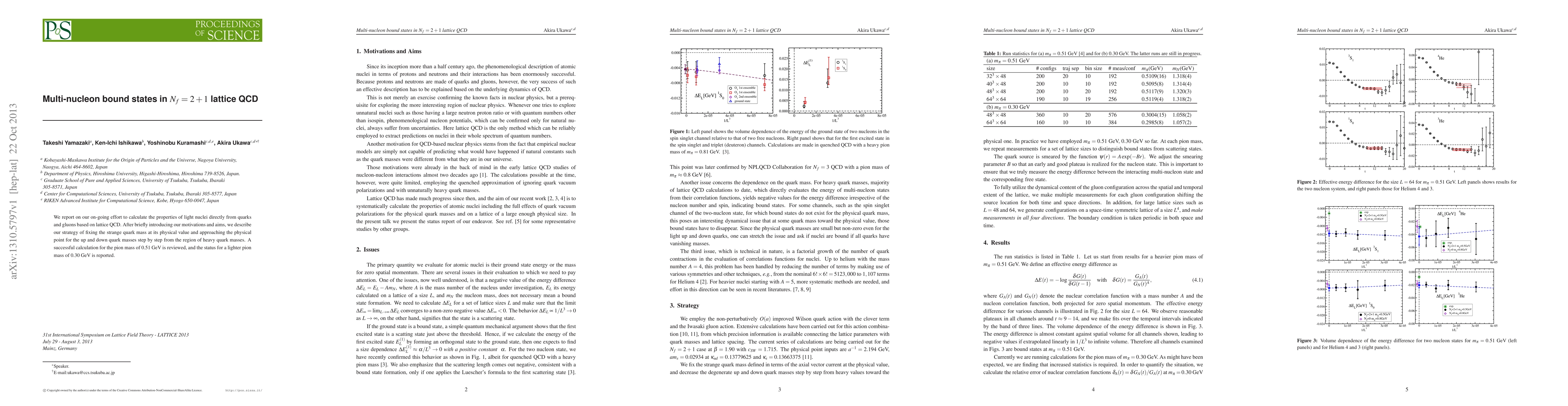 We report on our on-going effort to calculate the properties of light nuclei directly from quarks and gluons based on lattice QCD. After briefly introducing our motivations and aims, we describe our strategy of fixing the strange quark mass at its physical value and approaching the physical point for the up and down quark masses step by step from the region of heavy quark masses. A successful calculation for the pion mass of 0.51GeV is reviewed, and the status for a lighter pion mass of 0.30GeV is reported.