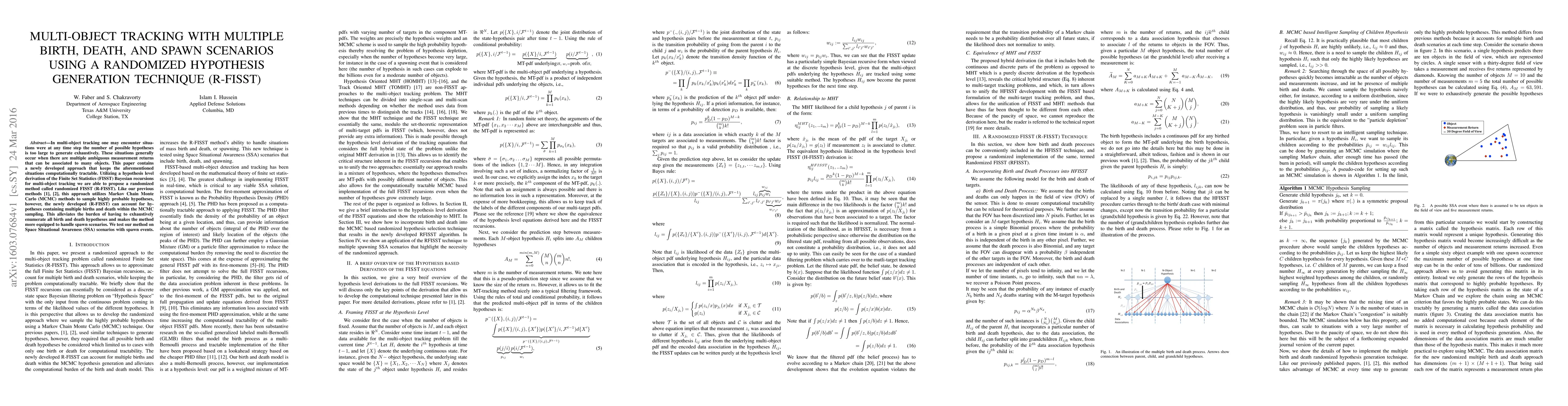 This paper presents a randomized hypothesis generation technique called R-FISST for multi-object tracking, which uses MCMC sampling to efficiently manage large hypothesis sets, including scenarios with multiple births and deaths. This approach enhances the handling of spawn events in Space Situational Awareness scenarios.