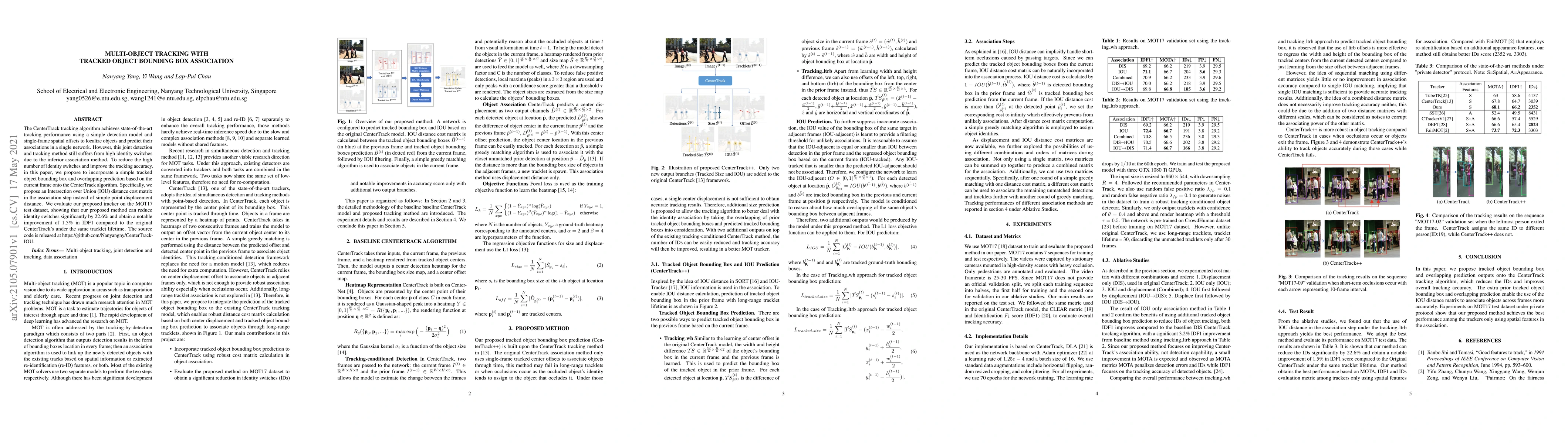 The CenterTrack tracking algorithm achieves state-of-the-art tracking performance using a simple detection model and single-frame spatial offsets to localize objects and predict their associations in a single network. However, this joint detection and tracking method still suffers from high identity switches due to the inferior association method. To reduce the high number of identity switches and improve the tracking accuracy, in this paper, we propose to incorporate a simple tracked object bounding box and overlapping prediction based on the current frame onto the CenterTrack algorithm. Specifically, we propose an Intersection over Union (IOU) distance cost matrix in the association step instead of simple point displacement distance. We evaluate our proposed tracker on the MOT17 test dataset, showing that our proposed method can reduce identity switches significantly by 22.6% and obtain a notable improvement of 1.5% in IDF1 compared to the original CenterTrack's under the same tracklet lifetime. The source code is released at https://github.com/Nanyangny/CenterTrack-IOU.