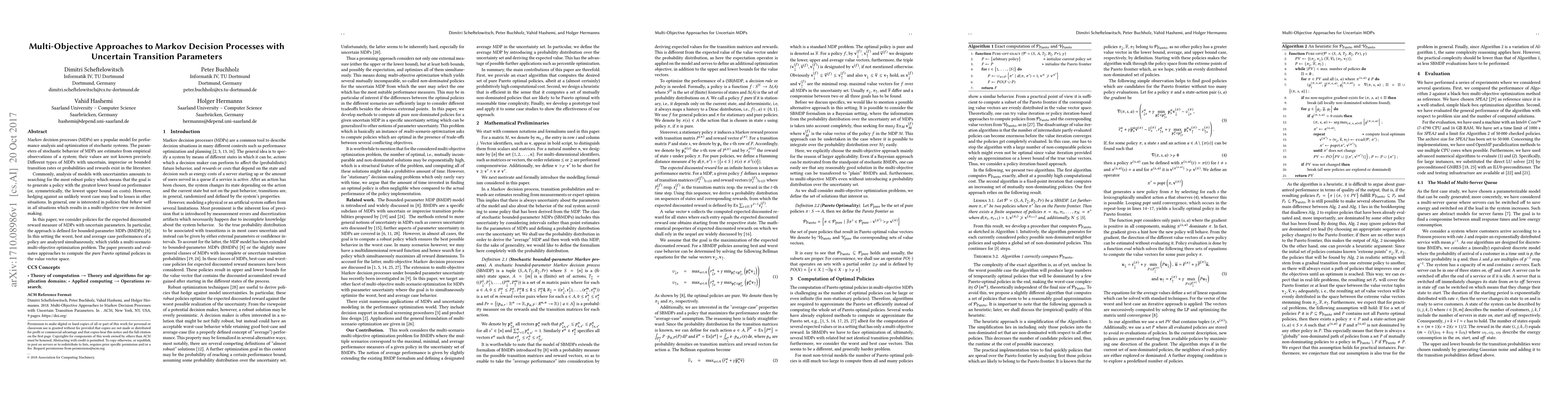 This paper explores multi-objective approaches to Markov decision processes (MDPs) with uncertain transition parameters, focusing on bounded-parameter MDPs (BMDPs). It aims to find policies that perform well across various scenarios, analyzing worst, best, and average case performances to generate Pareto optimal policies.