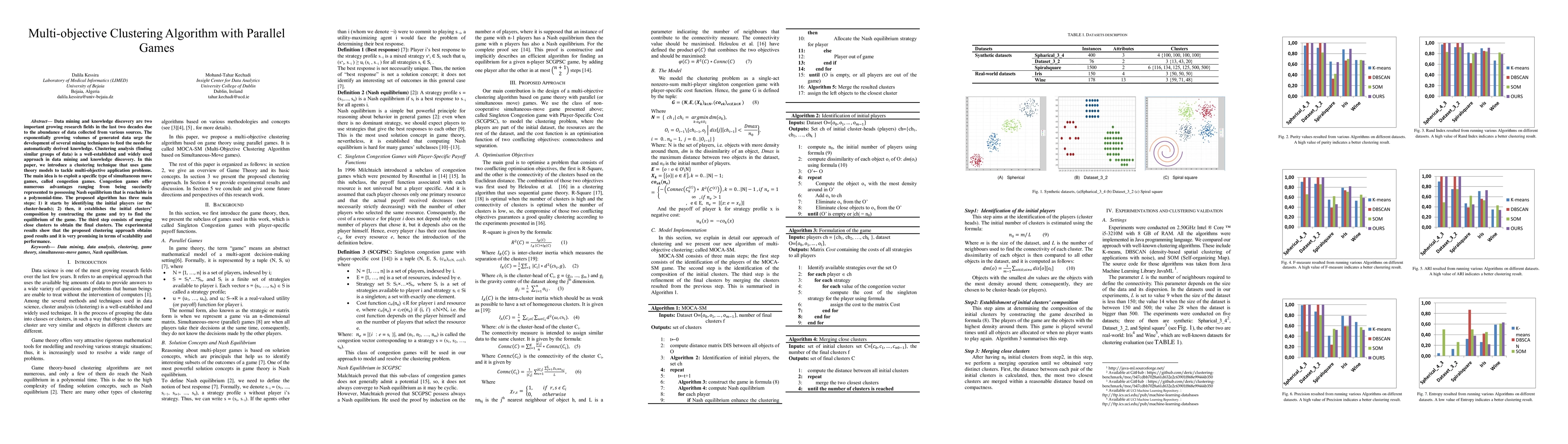 This paper introduces a multi-objective clustering algorithm leveraging congestion games from game theory to efficiently cluster large datasets. The algorithm merges clusters based on game equilibrium, demonstrating promising scalability and performance in experiments.