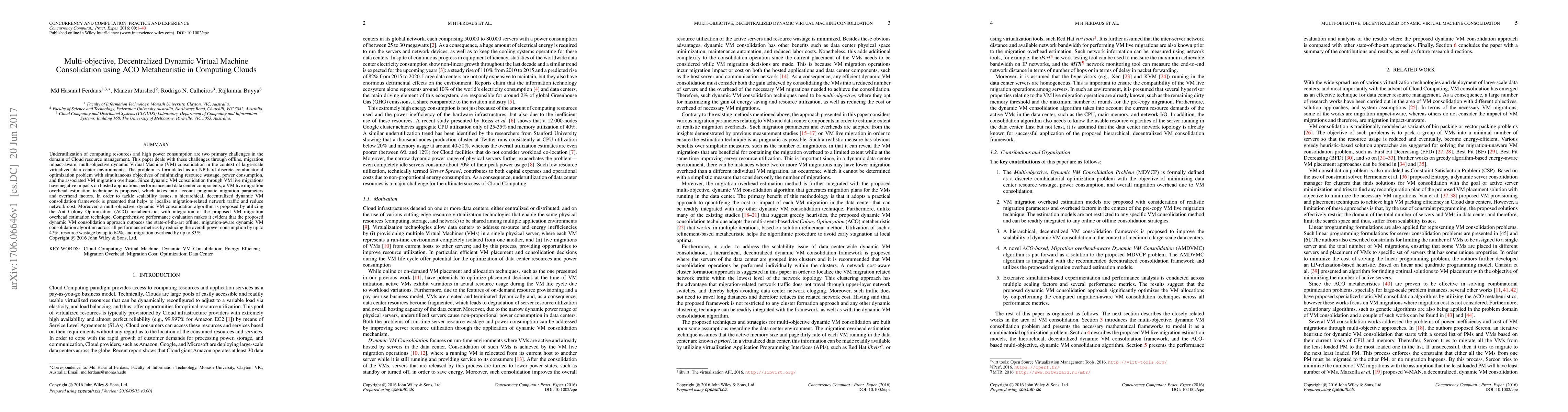 This paper proposes a decentralized, multi-objective dynamic Virtual Machine (VM) consolidation framework using Ant Colony Optimization (ACO) to tackle resource underutilization and high power consumption in cloud computing. The approach minimizes resource wastage, power consumption, and VM live migration overhead, achieving up to 47% reduction in power consumption, 64% in resource wastage, and 83% in migration overhead.