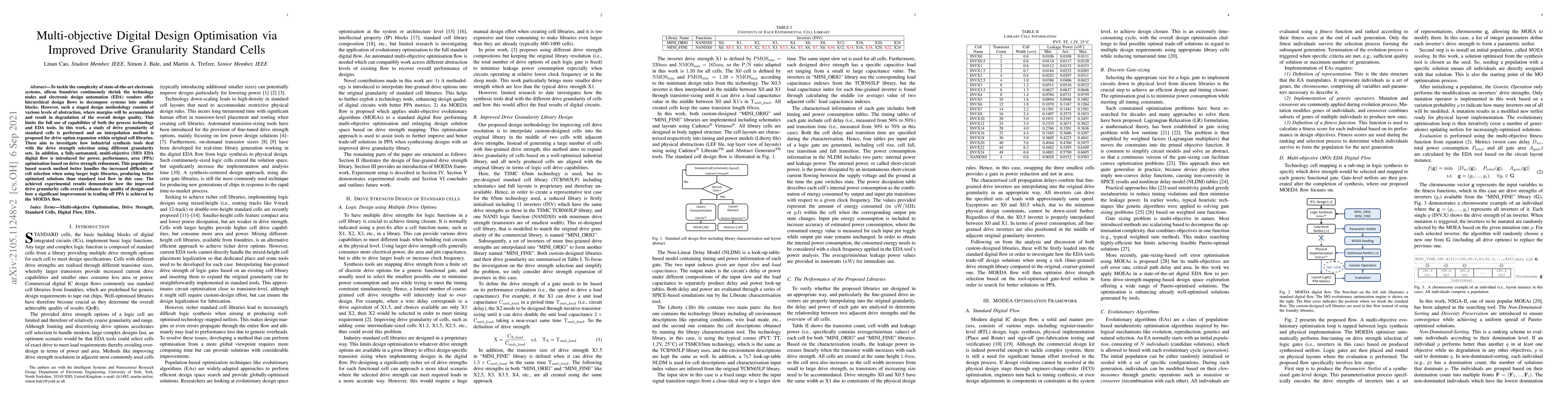 To tackle the complexity of state-of-the-art electronic systems, silicon foundries continuously shrink the technology nodes and electronic design automation (EDA) vendors offer hierarchical design flows to decompose systems into smaller blocks. However, such a staged design methodology consists of various levels of abstraction, where margins will be accumulated and result in degradation of the overall design quality. This limits the full use of capabilities of both the process technology and EDA tools. In this work, a study of drive granularity of standard cells is performed and an interpolation method is proposed for drive option expansion within original cell libraries. These aim to investigate how industrial synthesis tools deal with the drive strength selection using different granularity sets. In addition, a fully-automated, multi-objective (MO) EDA digital flow is introduced for power, performance, area (PPA) optimisation based on drive strength refinement. This population-based search method better handles the increased difficulty of cell selection when using larger logic libraries, producing better optimised solutions than standard tool flow in this case. The achieved experimental results demonstrate how the improved drive granularity cells overall enhance the quality of designs and how a significant improvement in trading off PPA is achieved by the MOEDA flow.