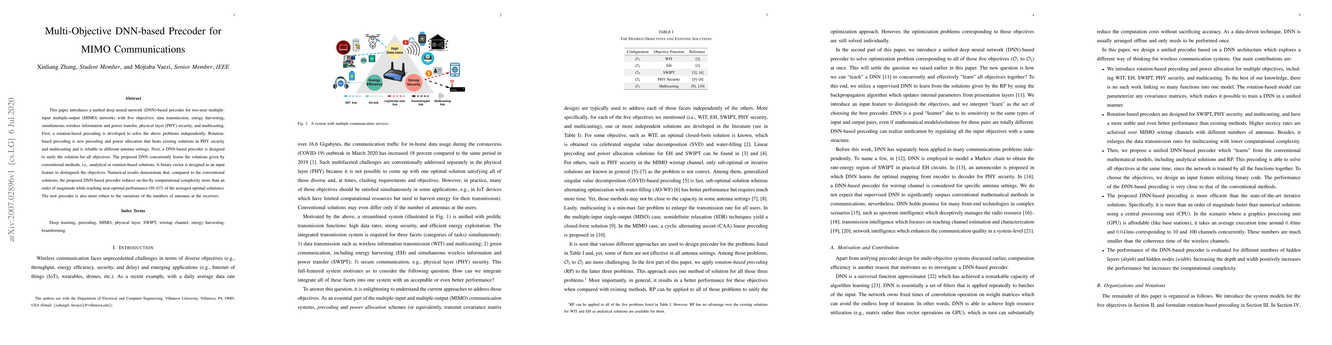 This paper proposes a unified DNN-based precoder for two-user MIMO networks addressing data transmission, energy harvesting, and more. The DNN-based precoder significantly reduces computational complexity while achieving near-optimal performance and improved robustness compared to conventional methods.