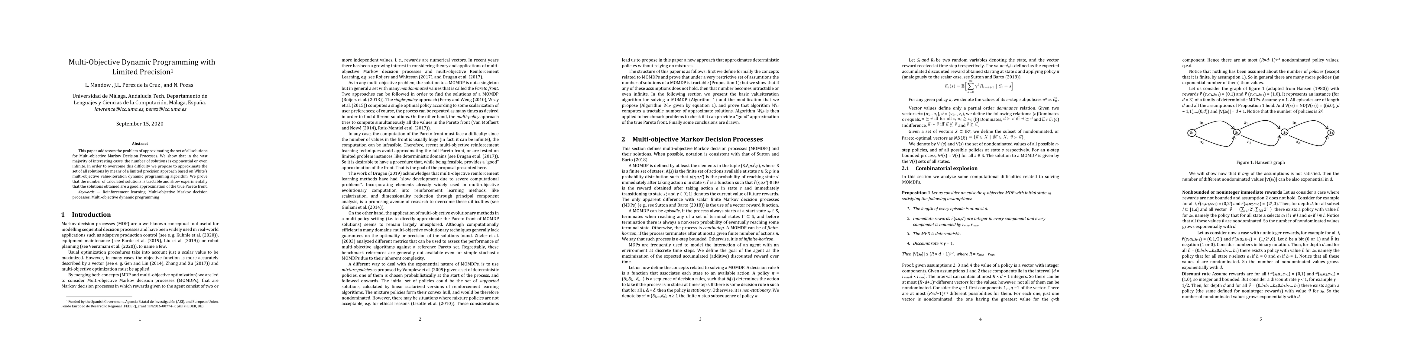 This paper introduces a method using limited precision dynamic programming to approximate solutions for Multi-objective Markov Decision Processes, which usually have an exponential or infinite number of solutions. It proves the tractability of the calculated solutions and demonstrates through experiments that these approximate solutions closely resemble the actual Pareto front.