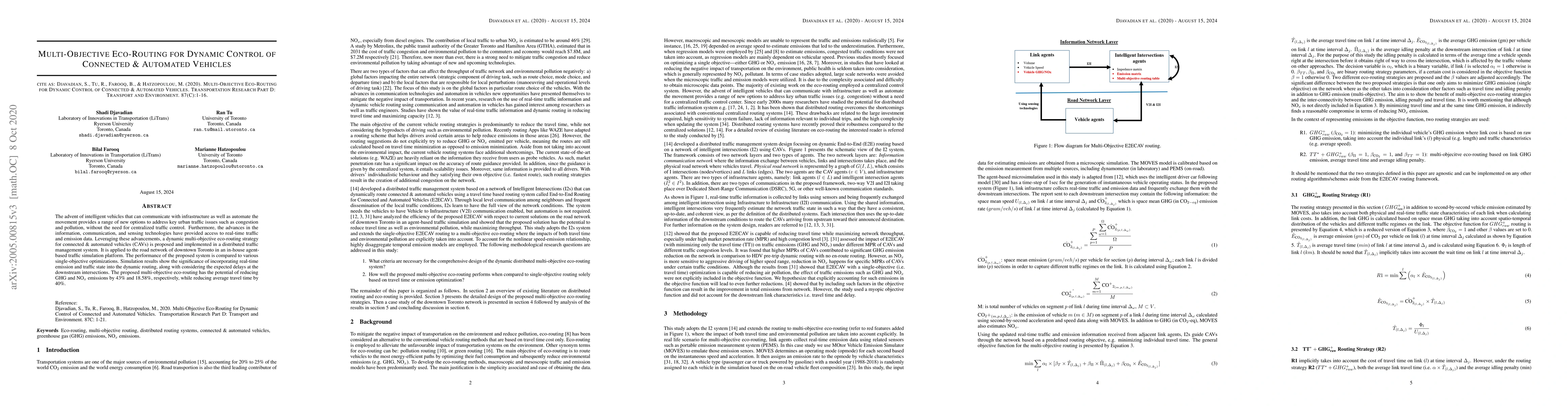 This paper proposes a dynamic multi-objective eco-routing strategy for connected & automated vehicles to address urban traffic congestion and pollution. Simulation results show a significant reduction in GHG and NOx emissions and travel time by integrating real-time traffic and emission data.