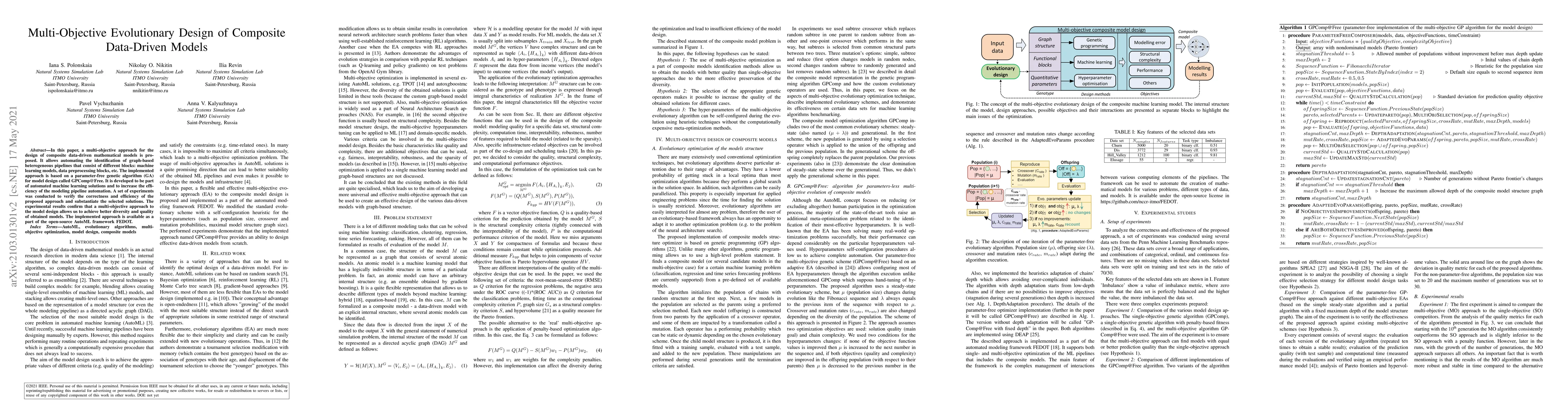 This paper proposes a multi-objective genetic algorithm, GPComp@Free, for automating the design of composite data-driven models, enhancing the efficiency of automated machine learning pipelines. Experimental results show improved diversity and quality of models, and the approach is integrated into the open-source AutoML framework FEDOT.