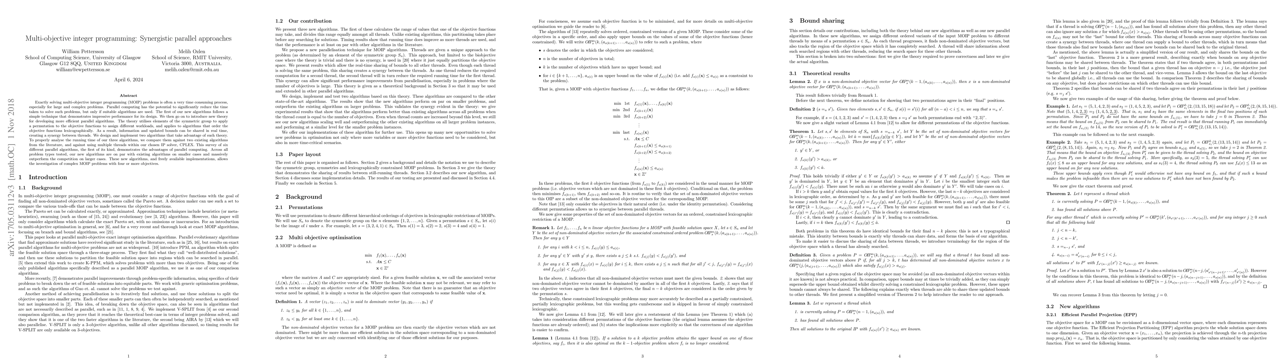 Exactly solving multi-objective integer programming (MOIP) problems is often a very time consuming process, especially for large and complex problems. Parallel computing has the potential to significantly reduce the time taken to solve such problems, but only if suitable algorithms are used. The first of our new algorithms follows a simple technique that demonstrates impressive performance for its design. We then go on to introduce new theory for developing more efficient parallel algorithms. The theory utilises elements of the symmetric group to apply a permutation to the objective functions to assign different workloads, and applies to algorithms that order the objective functions lexicographically. As a result, information and updated bounds can be shared in real time, creating a synergy between threads. We design and implement two algorithms that take advantage of such theory. To properly analyse the running time of our three algorithms, we compare them against two existing algorithms from the literature, and against using multiple threads within our chosen IP solver, CPLEX. This survey of six different parallel algorithms, the first of its kind, demonstrates the advantages of parallel computing. Across all problem types tested, our new algorithms are on par with existing algorithms on smaller cases and massively outperform the competition on larger cases. These new algorithms, and freely available implementations, allows the investigation of complex MOIP problems with four or more objectives.
