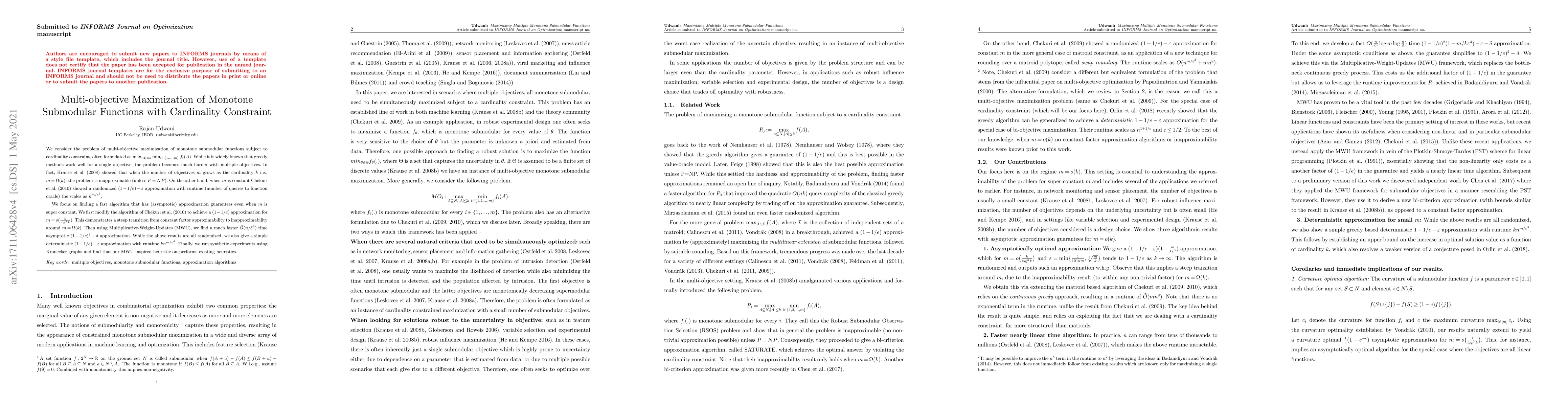 Researchers developed fast and practical algorithms to maximize multiple monotone submodular functions with a cardinality constraint, achieving approximation guarantees even when the number of objectives is super-constant.