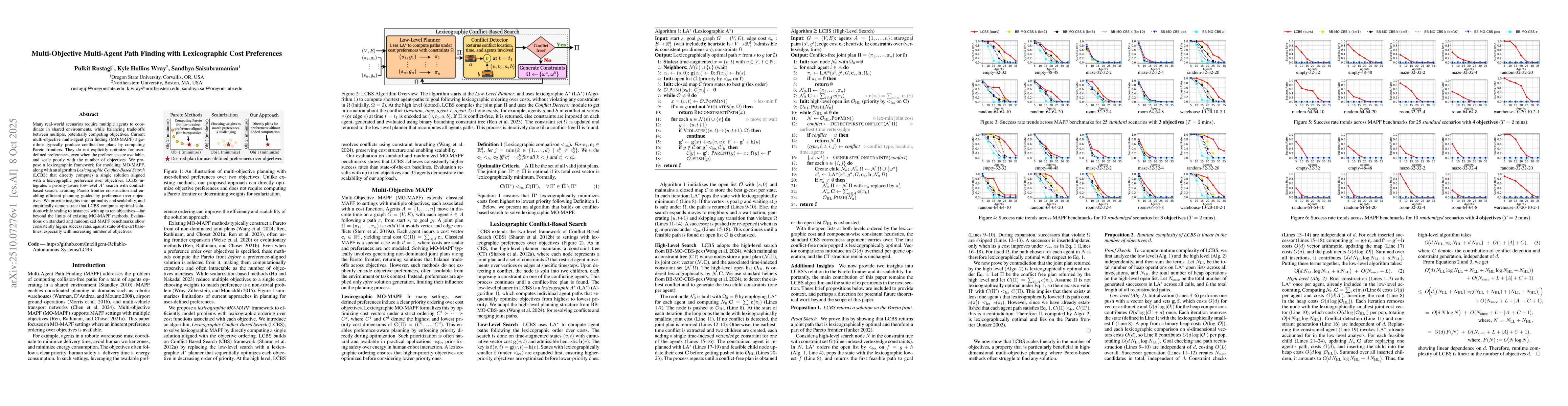 This research provides an efficient and scalable solution for multi-agent pathfinding with multiple objectives, enabling better coordination in complex environments where user-defined preferences are critical.
