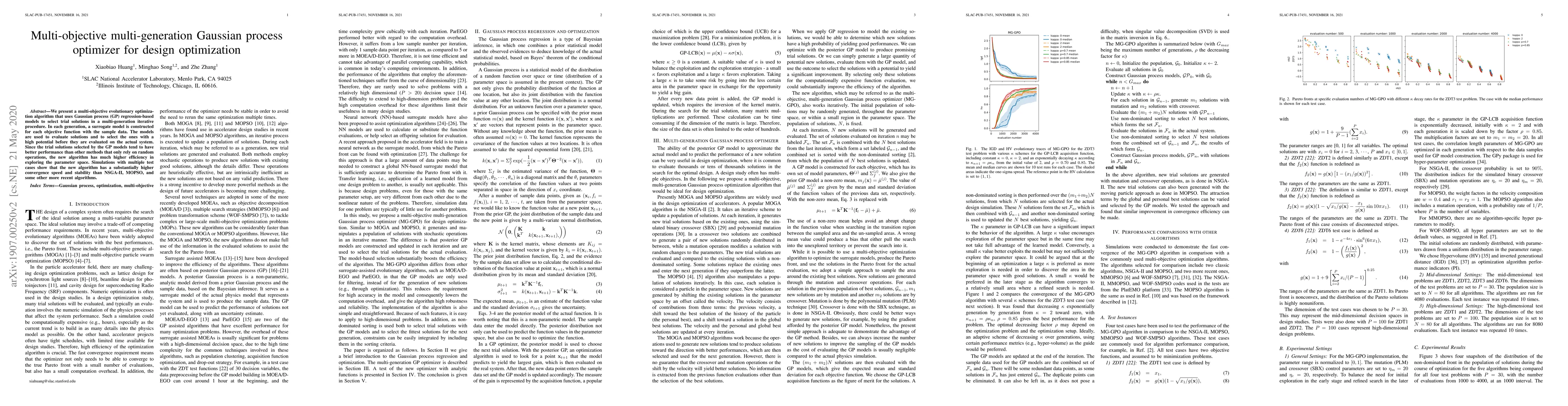 This paper introduces a multi-objective optimization algorithm leveraging Gaussian process regression for efficient solution selection in a multi-generation evolutionary framework. The proposed method demonstrates superior convergence speed and stability compared to NSGA-II, MOPSO, and other contemporary algorithms through extensive simulations.