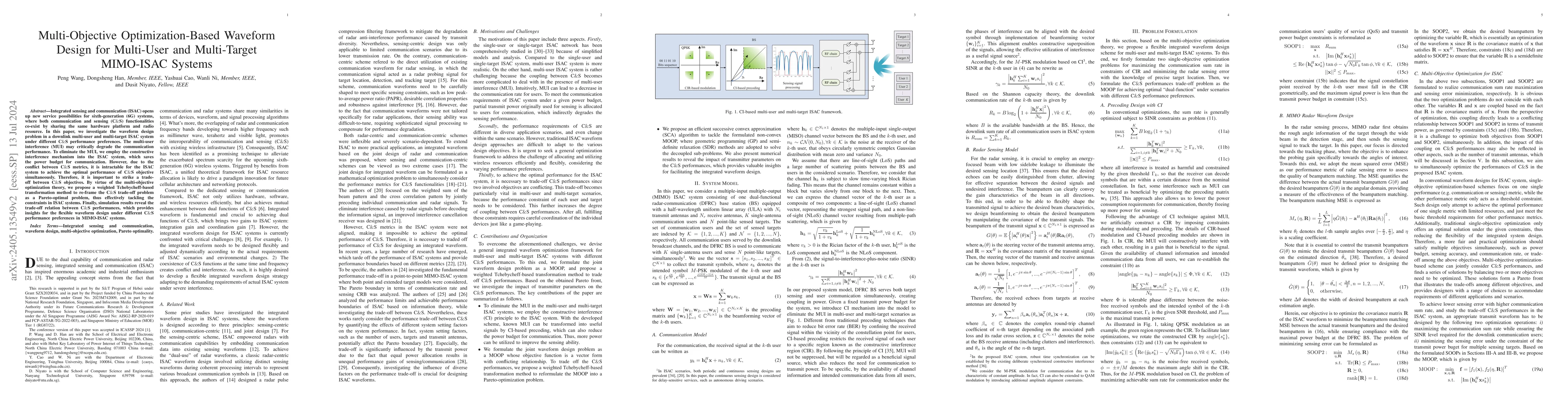 This paper proposes a multi-objective optimization approach for designing waveforms in multi-user and multi-target ISAC systems to balance communication and sensing performance. It introduces a weighted Tchebycheff-based transformation method to manage the trade-off between these objectives, effectively addressing interference and resource constraints.