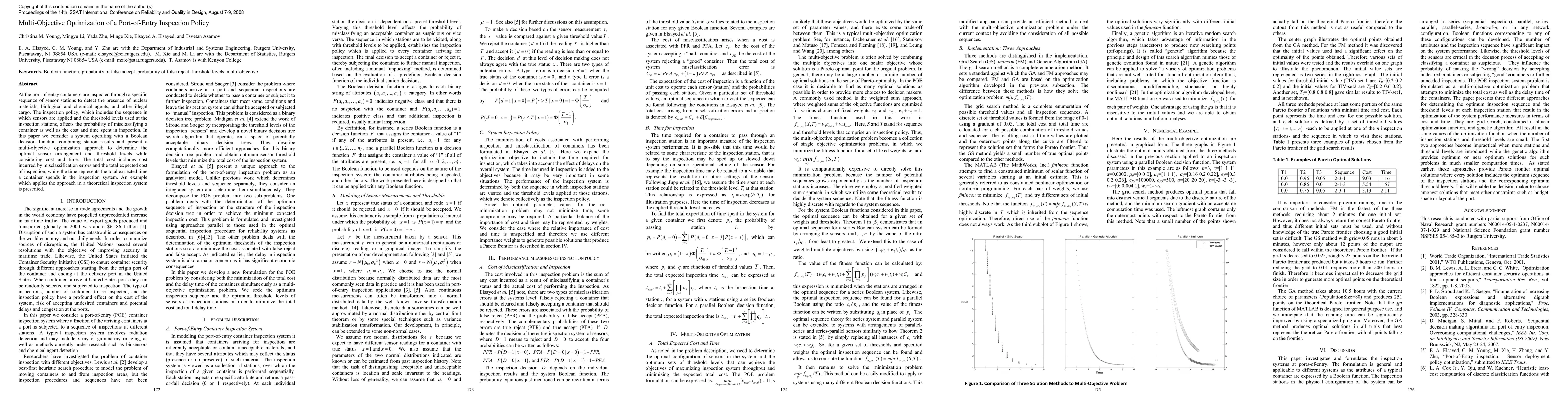 This paper proposes a multi-objective optimization method to determine the best sequence of sensor stations and threshold levels for port-of-entry inspections, balancing cost and time against the probability of misclassification errors. An example demonstrates the approach in a theoretical inspection system.