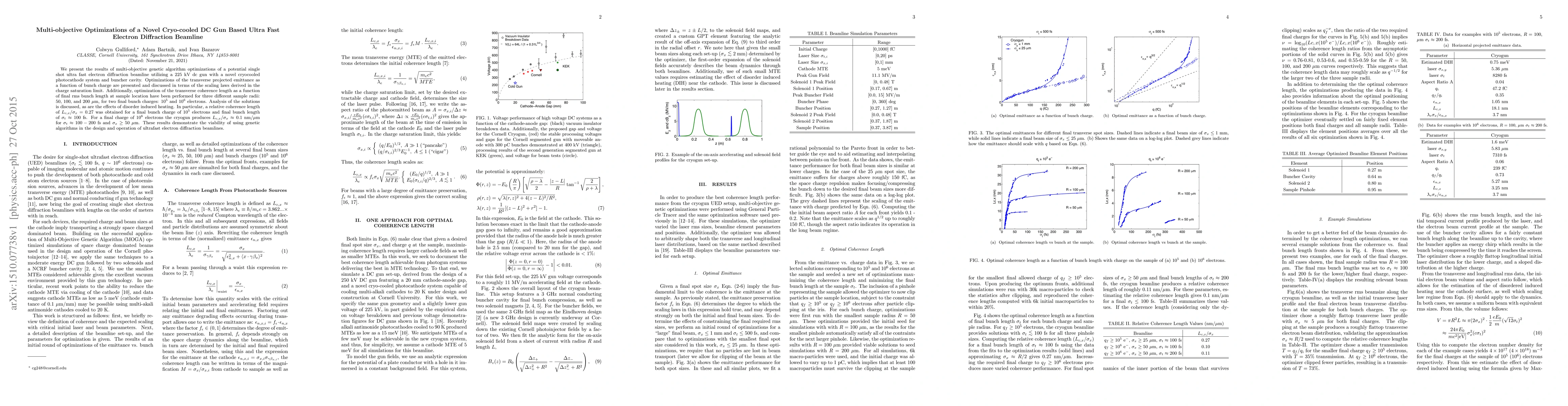 We present the results of multi-objective genetic algorithm optimizations of a potential single shot ultra fast electron diffraction beamline utilizing a 225 kV dc gun with a novel cryocooled photocathode system and buncher cavity. Optimizations of the transverse projected emittance as a function of bunch charge are presented and discussed in terms of the scaling laws derived in the charge saturation limit. Additionally, optimization of the transverse coherence length as a function of final rms bunch length at sample location have been performed for three different sample radii: 50, 100, 200 microns, for two final bunch charges: 100k and 1000k electrons. Analysis of the solutions is discussed, as are the effects of disorder induced heating. In particular, a coherence length per rms spot size of 0.27 nm/micron was obtained for a final bunch charge of 100k electrons and final rms bunch length of approximately 100 fs. For a final charge of 1000k electrons the cryogun produces a coherence length per rms spot size of 0.1 nm/micron for an rms bunch length of 100-200 fs and final spot size of 50 micron. These results demonstrate the viability of using genetic algorithms in the design and operation of ultrafast electron diffraction beamlines.