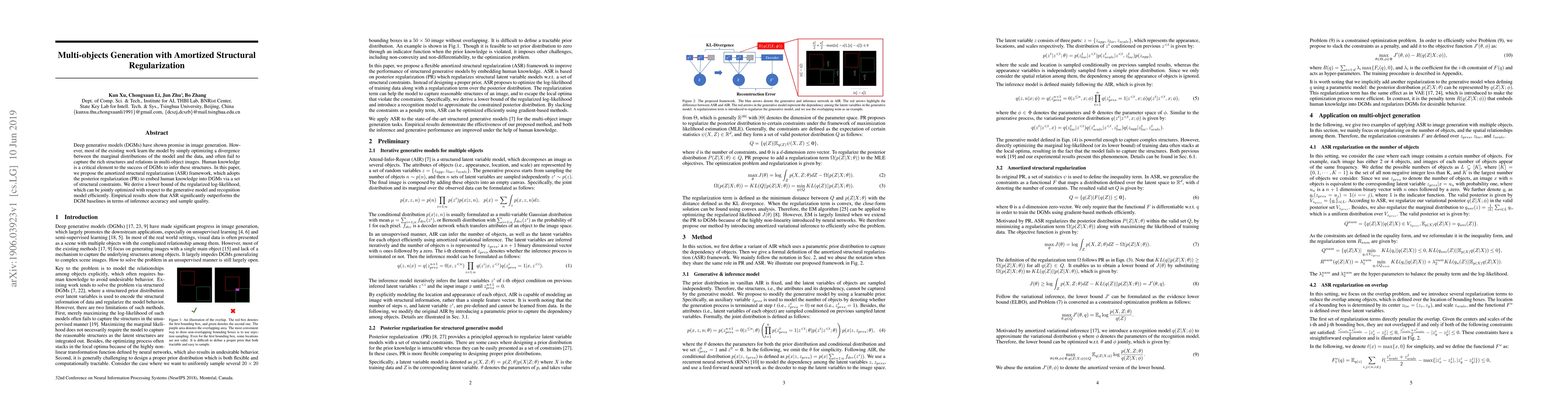 This paper introduces the amortized structural regularization (ASR) framework to enhance deep generative models (DGMs) for multi-object image generation. ASR embeds human knowledge through structural constraints, leading to better inference accuracy and sample quality compared to baseline DGMs.