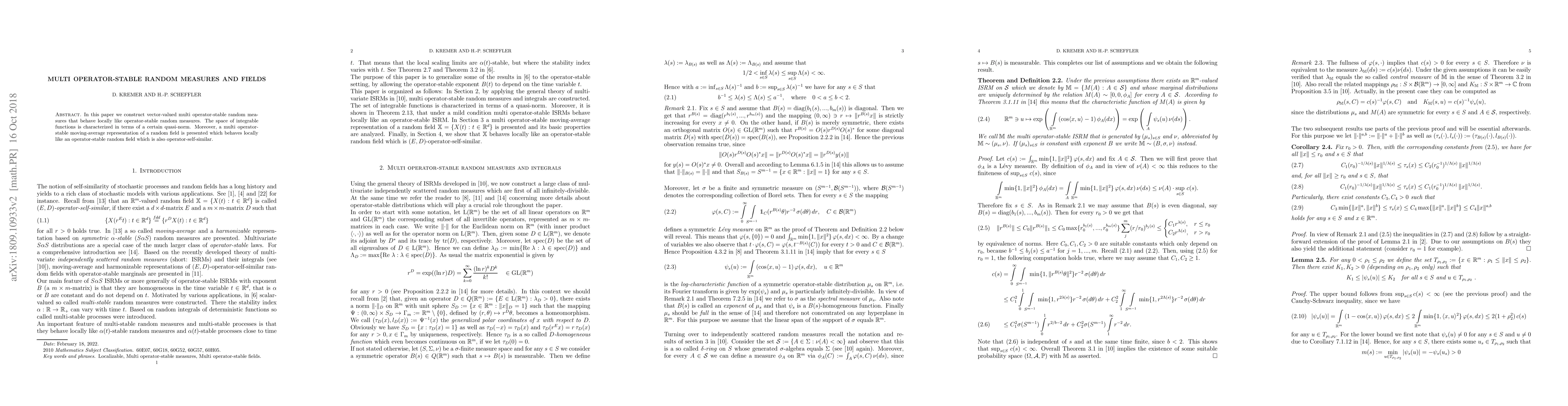 This paper constructs vector-valued multi operator-stable random measures and fields, presenting a local behavior similar to operator-stable random measures. It also introduces a multi operator-stable moving-average representation for random fields, which is locally operator-stable and operator-self-similar.