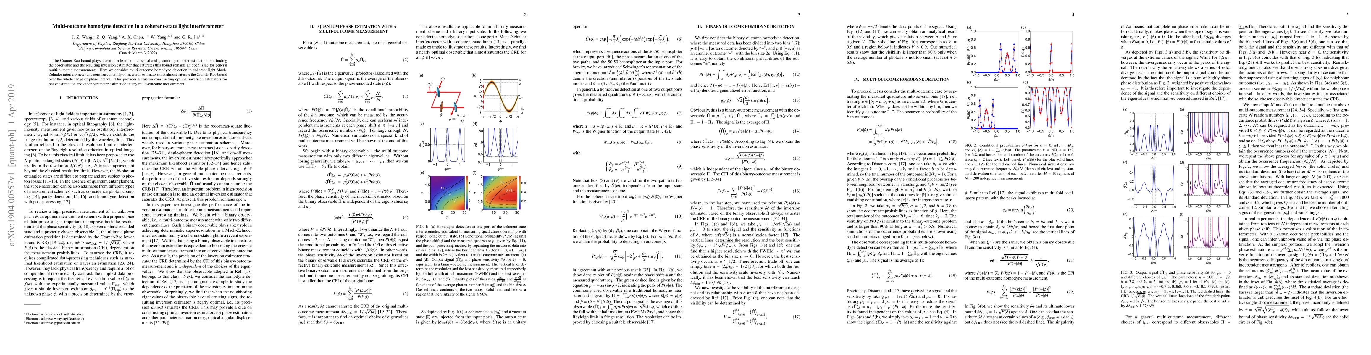 This paper develops inversion estimators for multi-outcome homodyne detection in a coherent-light Mach-Zehnder interferometer that nearly saturate the Cramér-Rao bound, offering insights into optimal parameter estimation in general multi-outcome measurements. The findings suggest a pathway to construct near-optimal estimators for phase and other parameter estimations.