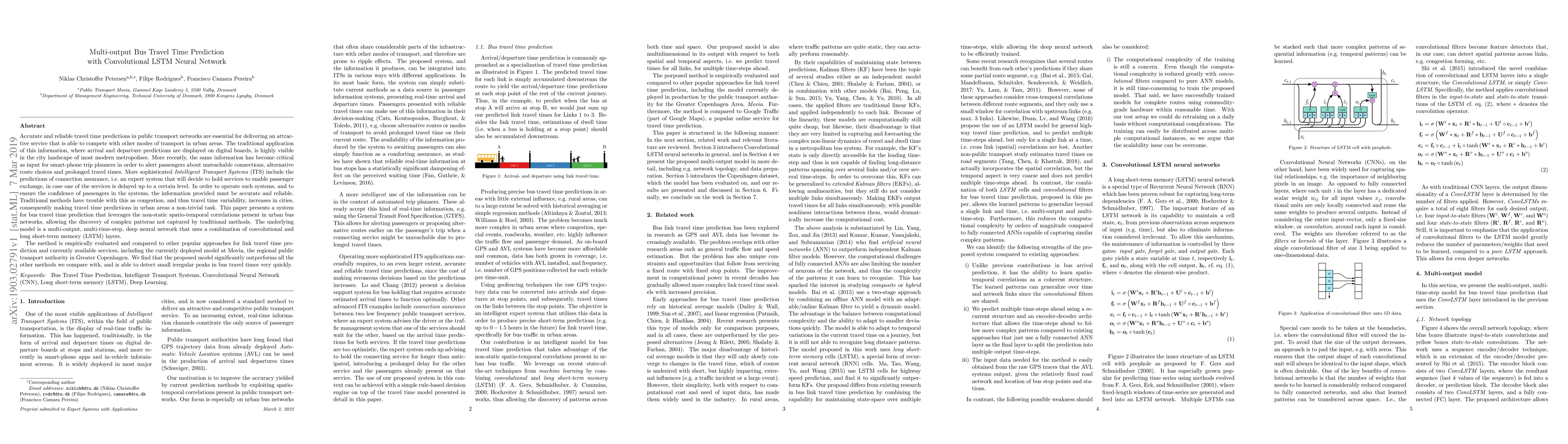 This paper proposes a multi-output Convolutional LSTM neural network for predicting bus travel times in urban areas, capturing complex spatio-temporal patterns. The model outperforms traditional methods and existing systems, including the deployed model in Copenhagen, by providing more accurate and reliable predictions.