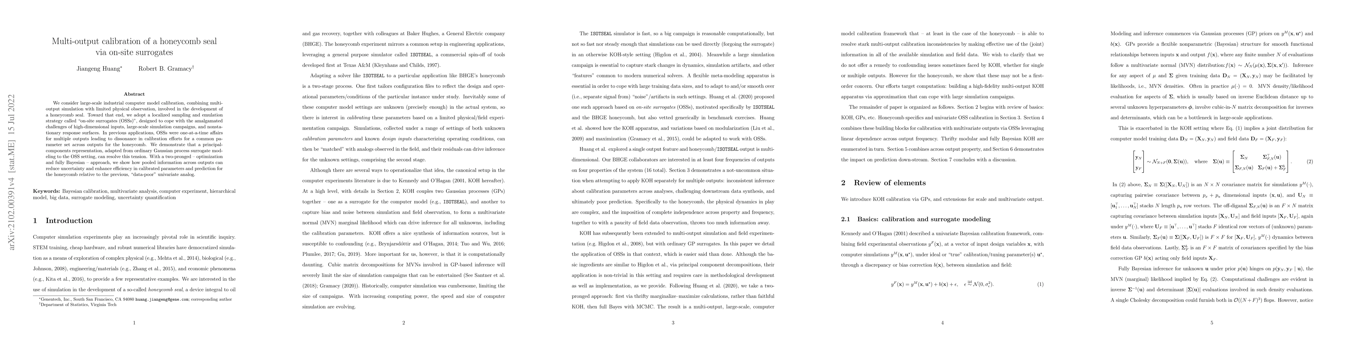 This paper presents a method for calibrating large-scale industrial computer models using "on-site surrogates" (OSSs) to address high-dimensional inputs and nonstationary response surfaces. It introduces a principal-components approach to harmonize multi-output calibration, demonstrating improved efficiency and reduced uncertainty compared to previous univariate methods.