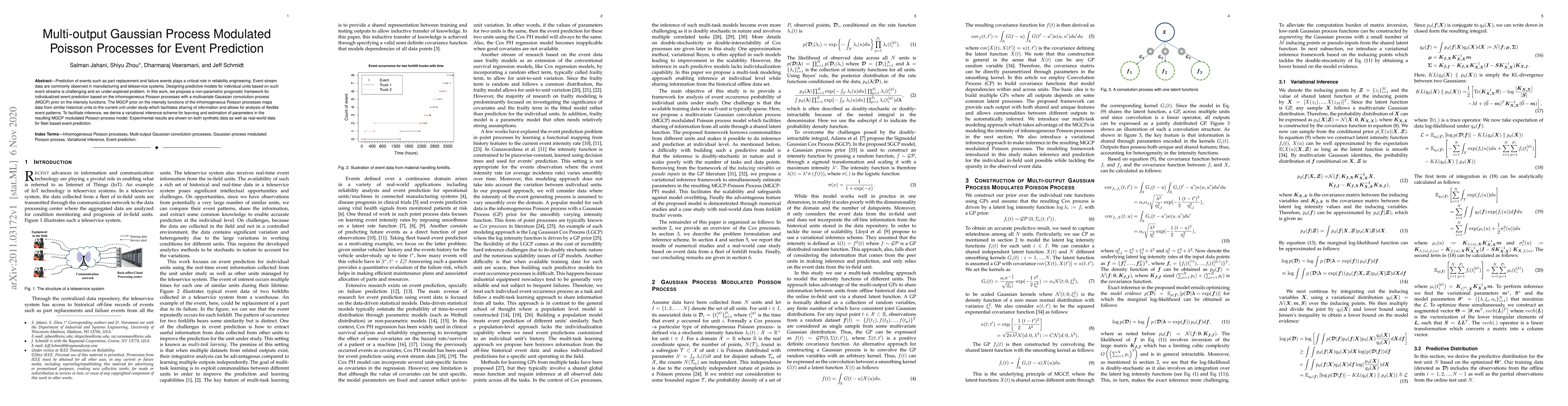 Prediction of events such as part replacement and failure events plays a critical role in reliability engineering. Event stream data are commonly observed in manufacturing and teleservice systems. Designing predictive models for individual units based on such event streams is challenging and an under-explored problem. In this work, we propose a non-parametric prognostic framework for individualized event prediction based on the inhomogeneous Poisson processes with a multivariate Gaussian convolution process (MGCP) prior on the intensity functions. The MGCP prior on the intensity functions of the inhomogeneous Poisson processes maps data from similar historical units to the current unit under study which facilitates sharing of information and allows for analysis of flexible event patterns. To facilitate inference, we derive a variational inference scheme for learning and estimation of parameters in the resulting MGCP modulated Poisson process model. Experimental results are shown on both synthetic data as well as real-world data for fleet based event prediction.