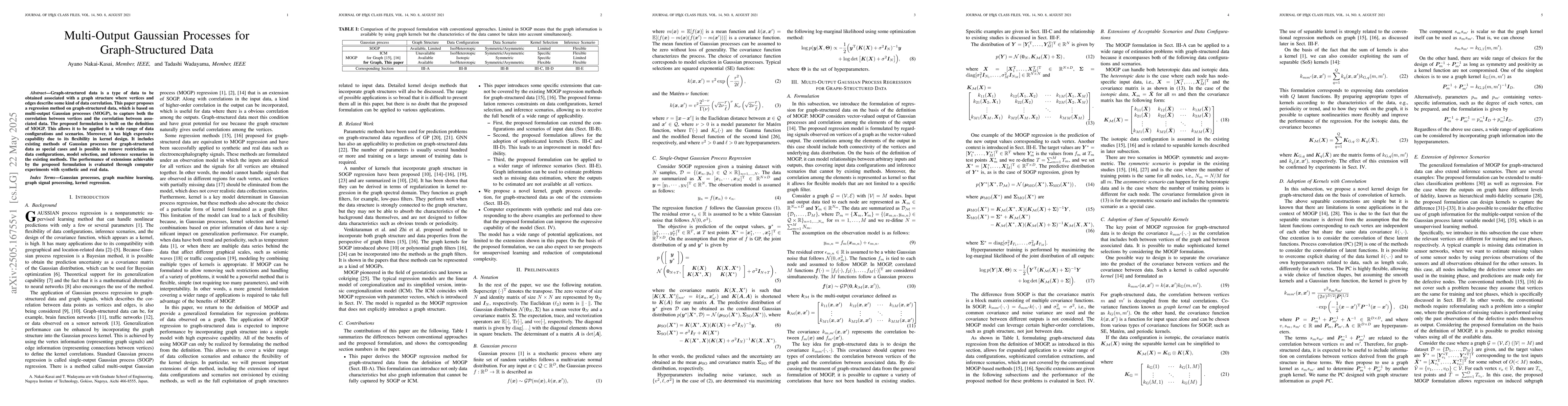 The paper proposes a regression method for graph-structured data based on multi-output Gaussian processes (MOGP), capturing both vertex and data correlation. It builds on MOGP definition, allowing application to diverse data configurations and scenarios with high flexibility in kernel design.