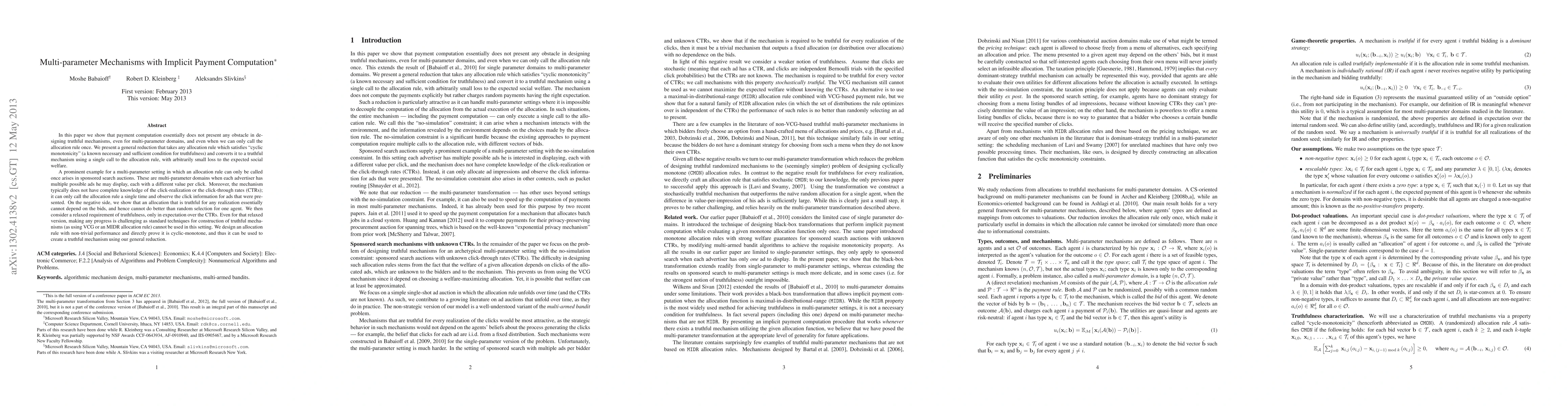 This paper demonstrates that designing truthful mechanisms in multi-parameter domains, such as sponsored search auctions, does not hinder payment computation, even when the allocation rule can only be called once. It presents a reduction that converts cyclic-monotonic allocation rules into truthful mechanisms with minimal welfare loss.