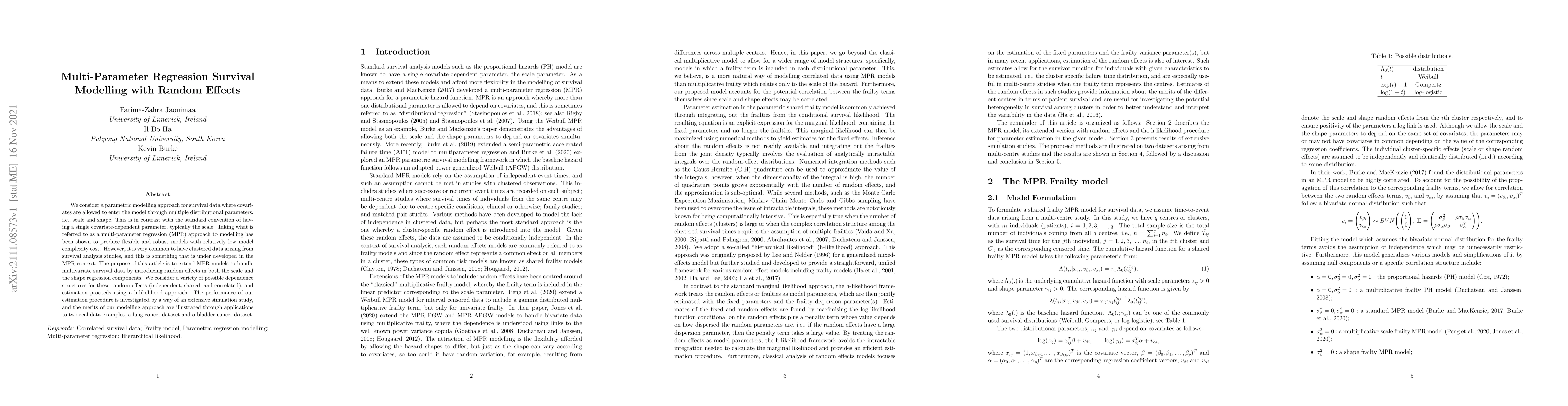This paper extends multi-parameter regression models for survival data to accommodate clustered data by introducing random effects in both scale and shape components. The proposed h-likelihood estimation method is evaluated through simulations and demonstrated on lung and bladder cancer datasets.