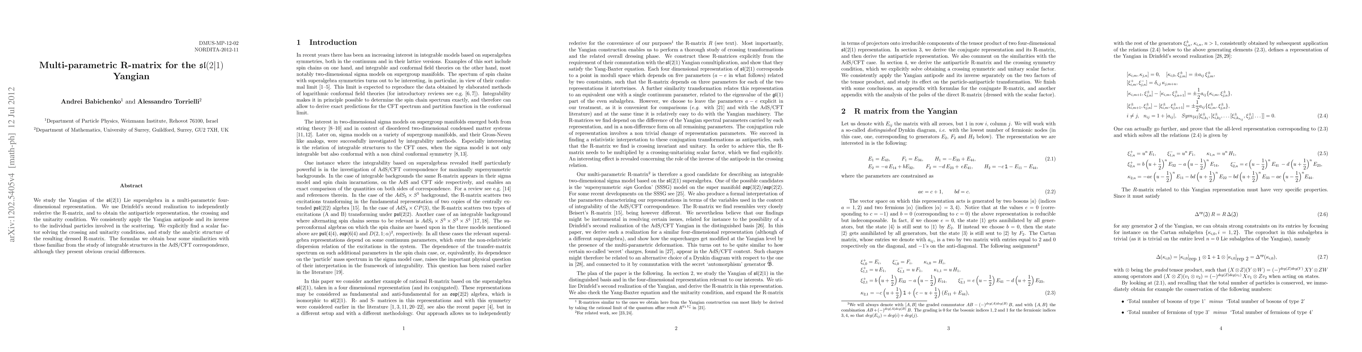 This paper derives the multi-parametric R-matrix for the sl(2|1) Yangian using Drinfeld's second realization, focusing on a four-dimensional representation. It explores the antiparticle representation, crossing, and unitarity conditions, and finds a scalar factor that satisfies these conditions, revealing similarities yet differences to integrable structures in AdS/CFT correspondence.