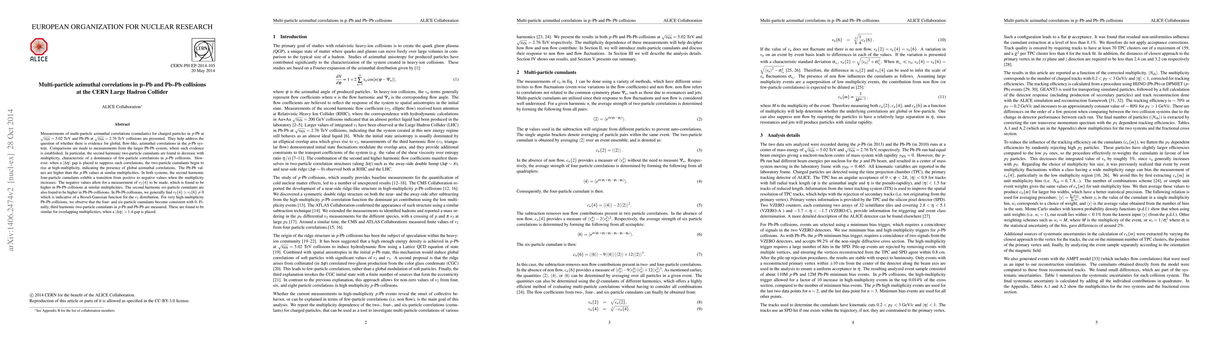 This paper investigates multi-particle azimuthal correlations in p-Pb and Pb-Pb collisions at the LHC, finding that while p-Pb shows few-particle correlations, Pb-Pb exhibits global flow-like correlations, particularly at high multiplicities. The study also reveals a transition in cumulant values and higher second harmonic coefficients in Pb-Pb collisions.