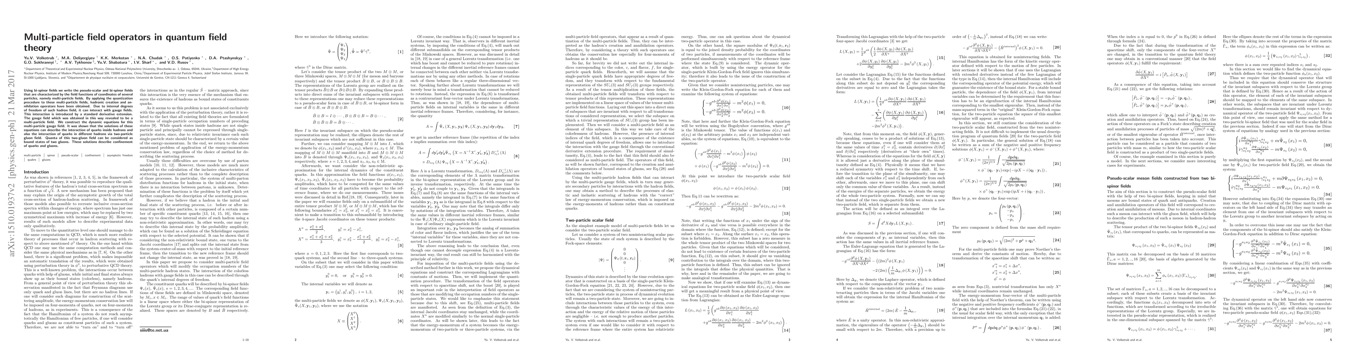 This research paper introduces multi-particle field operators in quantum field theory, describing how hadronic creation and annihilation operators can interact with gauge fields. It reveals that solutions to these dynamic equations describe the interaction of quarks inside hadrons and gluons, explaining confinement.