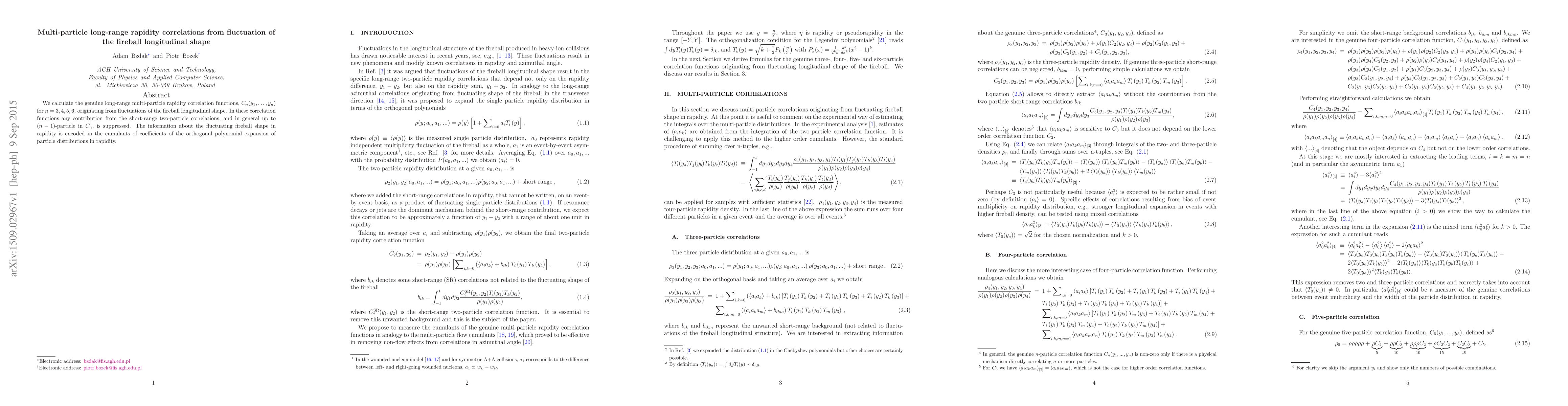 This paper investigates long-range multi-particle rapidity correlations in high-energy collisions, attributing these correlations to fluctuations in the fireball's longitudinal shape. The study focuses on genuine $C_n$ correlation functions for $n=3$ to $6$, where short-range contributions are minimized, and analyzes the cumulants of orthogonal polynomial expansions to extract shape information.