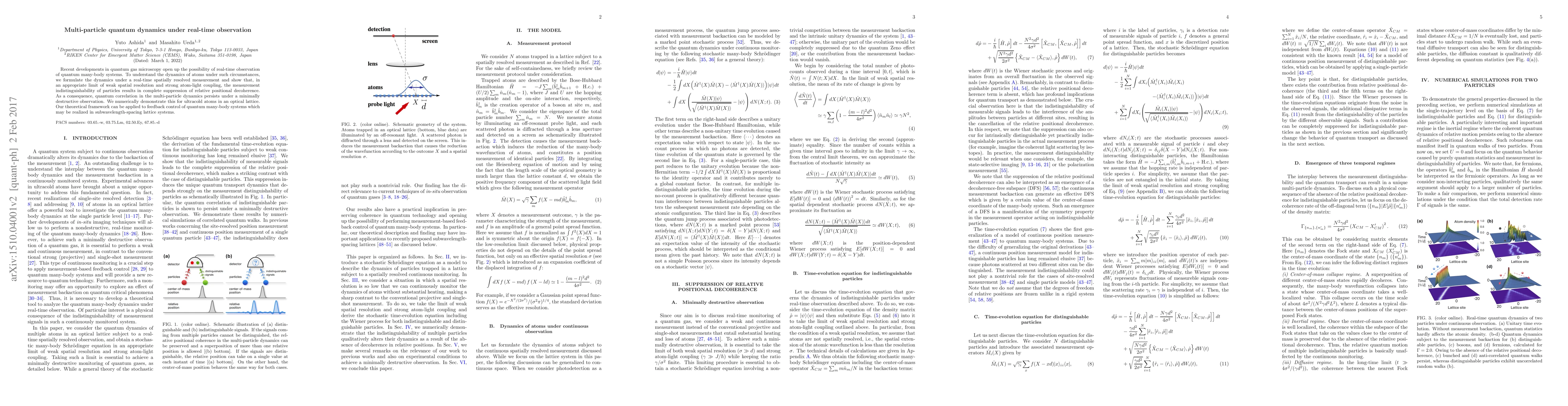 This paper explores the dynamics of quantum many-body systems under real-time observation using quantum gas microscopy, demonstrating that weak spatial resolution and strong atom-light coupling can suppress relative decoherence. The study shows that quantum correlations persist in multi-particle dynamics despite minimally destructive observation, with implications for feedback control in quantum systems.