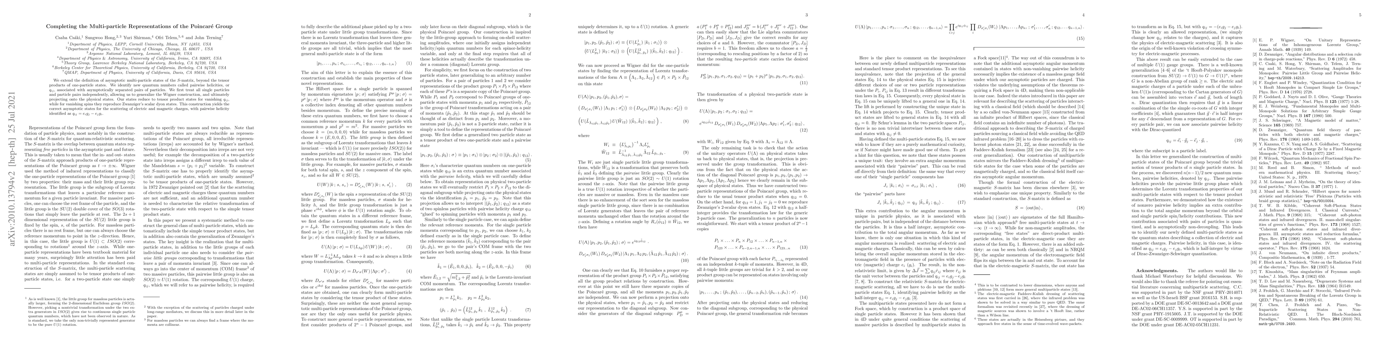 This paper introduces new multi-particle representations of the Poincaré group by extending the $S$-matrix to include pairwise helicities, $q_{ij}$, which signify an additional angular momentum source beyond orbital and spin contributions. The new states reproduce conventional direct product states under certain conditions and are suitable for scattering electric and magnetic charges.