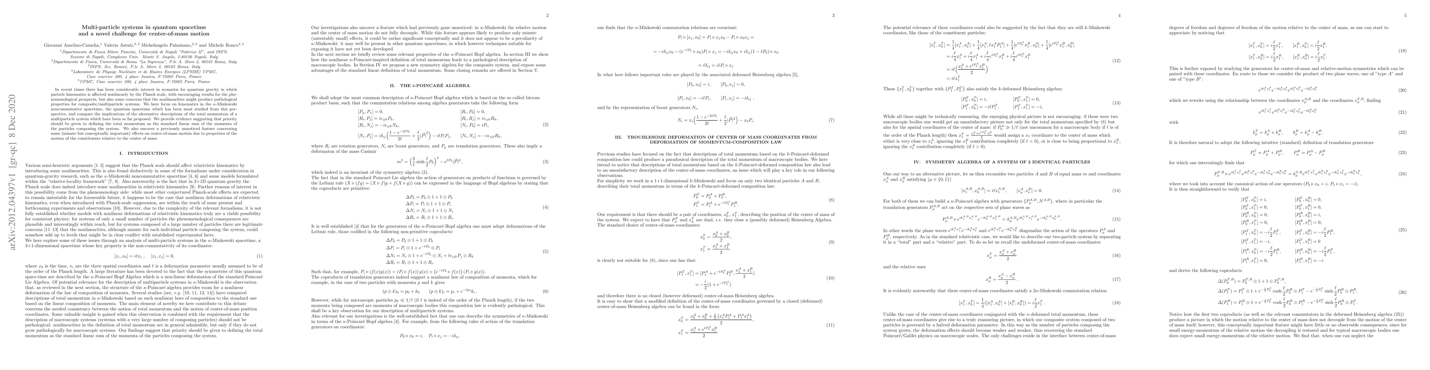 In recent times there has been considerable interest in scenarios for quantum gravity in which particle kinematics is affected nonlinearly by the Planck scale, with encouraging results for the phenomenological prospects, but also some concerns that the nonlinearities might produce pathological properties for composite/multiparticle systems. We here focus on kinematics in the $\kappa$-Minkowski noncommutative spacetime, the quantum spacetime which has been most studied from this perspective, and compare the implications of the alternative descriptions of the total momentum of a multiparticle system which have been so far proposed. We provide evidence suggesting that priority should be given to defining the total momentum as the standard linear sum of the momenta of the particles composing the system. We also uncover a previously unnoticed feature concerning some (minute but conceptually important) effects on center-of-mass motion due to properties of the motion of the constituents relative to the center of mass.