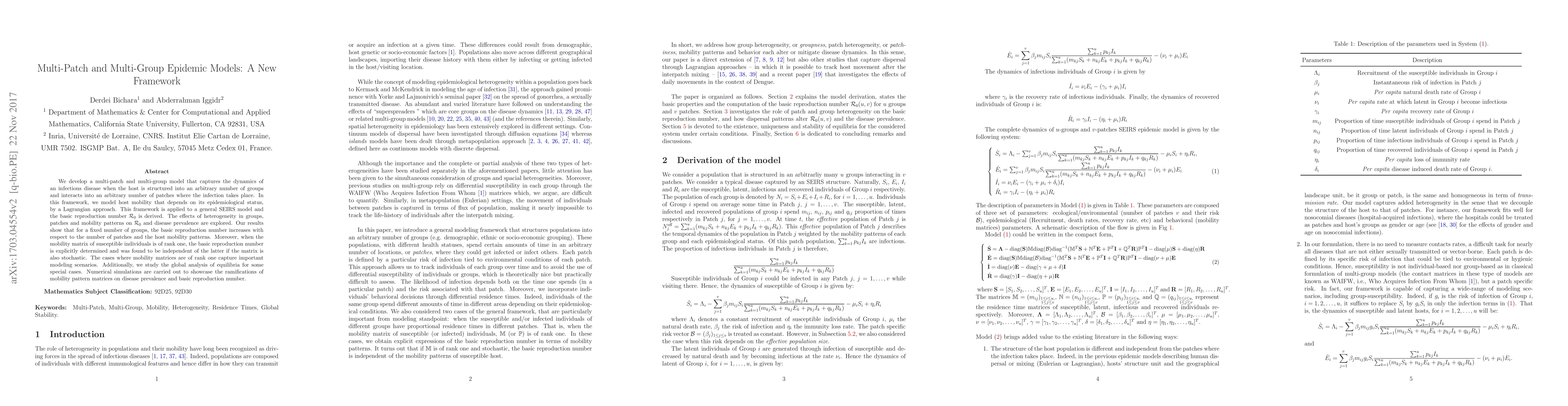 We develop a multi-patch and multi-group model that captures the dynamics of an infectious disease when the host is structured into an arbitrary number of groups and interacts into an arbitrary number of patches where the infection takes place. In this framework, we model host mobility that depends on its epidemiological status, by a Lagrangian approach. This framework is applied to a general SEIRS model and the basic reproduction number $\mathcal{R_0}$ is derived. The effects of heterogeneity in groups, patches and mobility patterns on $\mathcal{R_0}$ and disease prevalence are explored. Our results show that for a fixed number of groups, the basic reproduction number increases with respect to the number of patches and the host mobility patterns. Moreover, when the mobility matrix of susceptible individuals is of rank one, the basic reproduction number is explicitly determined and was found to be independent of the latter. The cases where mobility matrices are of rank one capture important modeling scenarios. Additionally, we study the global analysis of equilibria for some special cases. Numerical simulations are carried out to showcase the ramifications of mobility pattern matrices on disease prevalence and basic reproduction number.