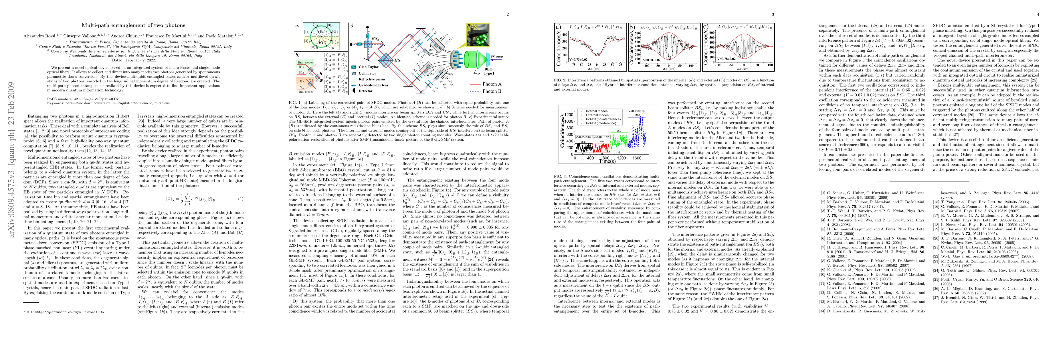 We present a novel optical device based on an integrated system of micro-lenses and single mode optical fibers. It allows to collect and direct into many modes two photons generated by spontaneous parametric down conversion. By this device multiqubit entangled states and/or multilevel qu-$d$it states of two photons, encoded in the longitudinal momentum degree of freedom, are created. The multi-path photon entanglement realized by this device is expected to find important applications in modern quantum information technology.