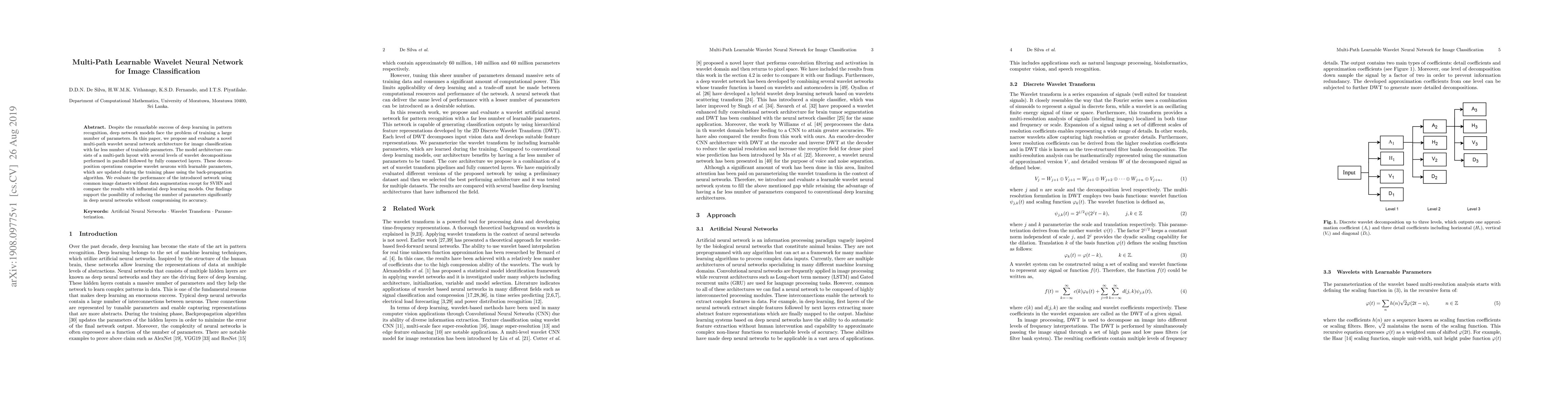 This paper introduces a multi-path learnable wavelet neural network for image classification that reduces the number of trainable parameters. The proposed architecture employs wavelet decompositions in parallel and demonstrates competitive performance compared to other deep learning models.